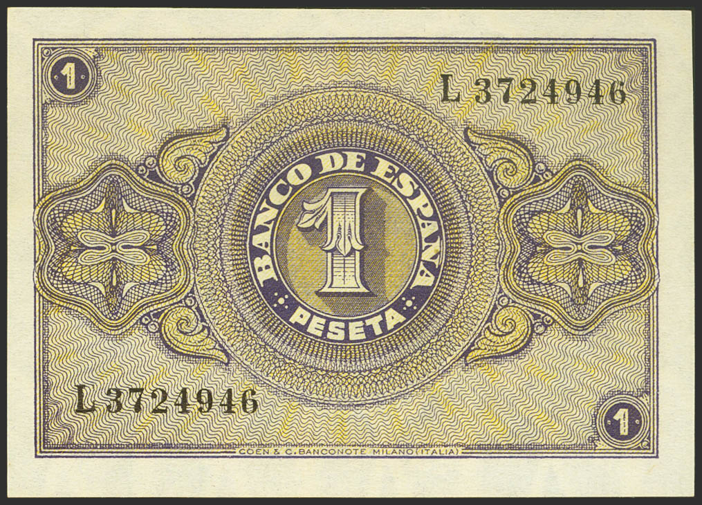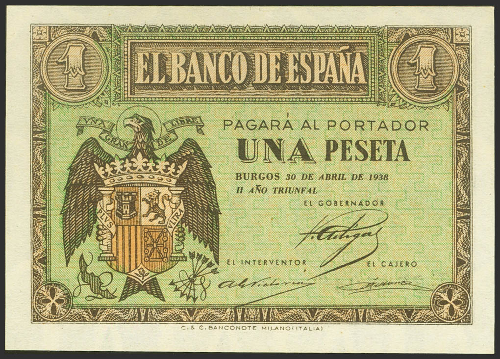 1 Peseta. 30 de Abril de 1938. Serie L. (Edifil 2023: 428a). Apresto original. SC.