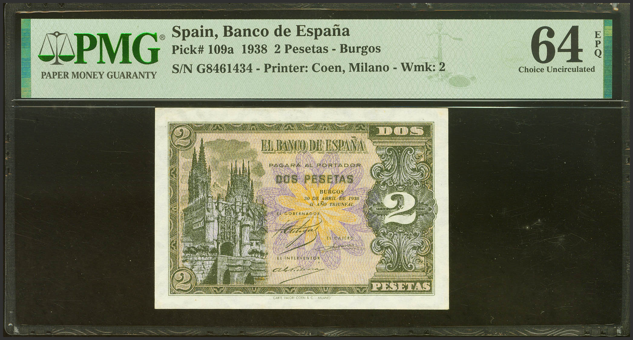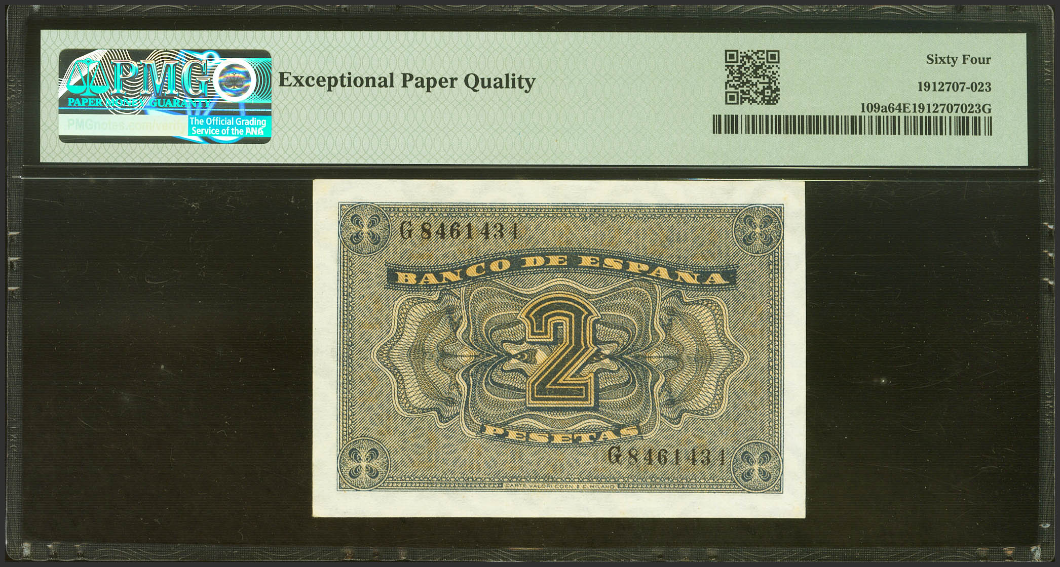2 Pesetas. 30 de Abril de 1938. Serie G. (Edifil 2017: 429a). Apresto original. SC. Encapsulado PMG64EPQ.