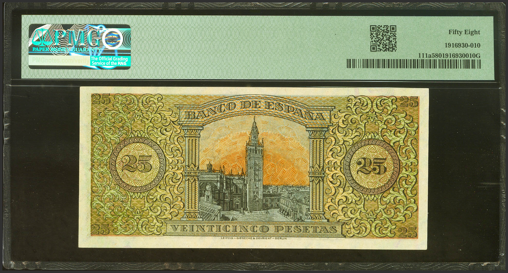 25 Pesetas. 20 de Mayo de 1938. Serie B. (Edifil 2023: 430a, Pick: 111a). EBC++. Encapsulado PMG58.