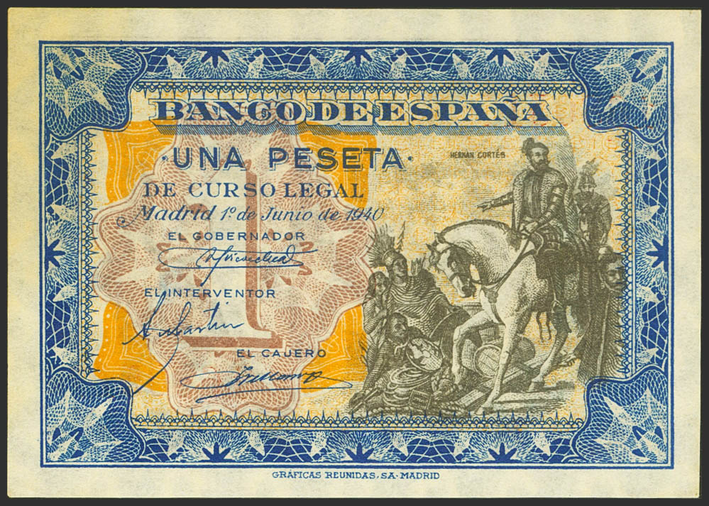 1 Peseta. 1 de Junio de 1940. Sin serie. (Edifil 2023: 441). Inusual, apresto original. SC-.