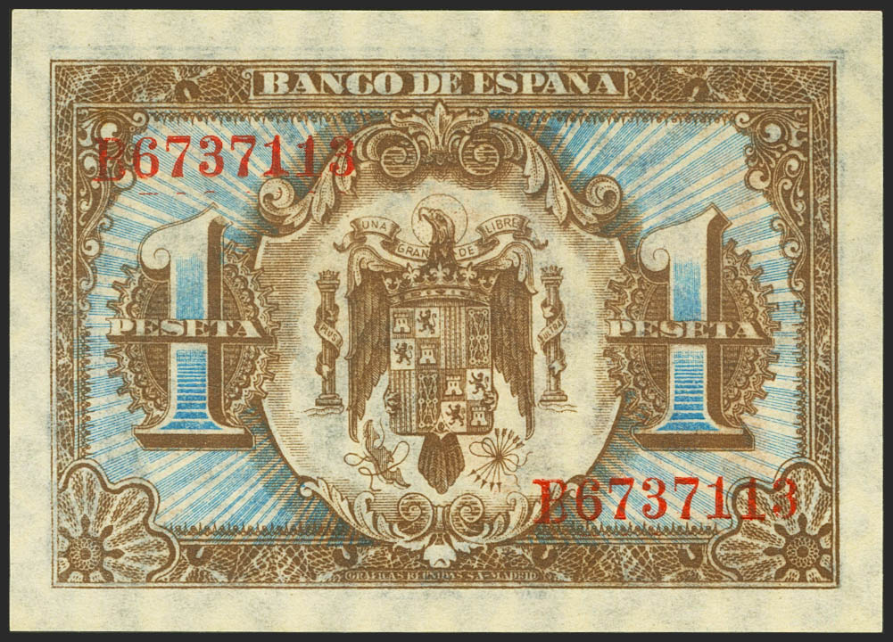 1 Peseta. 1 de Junio de 1940. Serie B. (Edifil 2021: 441a). Conserva la gran parte del apresto original. EBC+++.