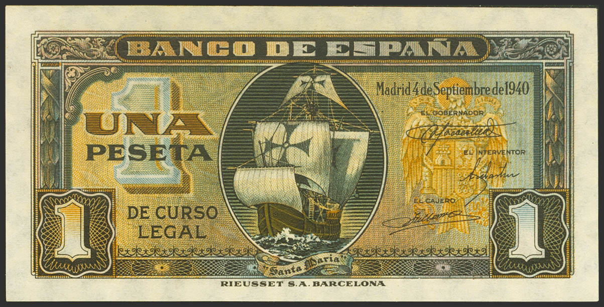 1 Peseta. 4 de Septiembre de 1940. Sin serie. (Edifil 2021: 442, Pick: 122a). Conserva todo su apresto original. SC.