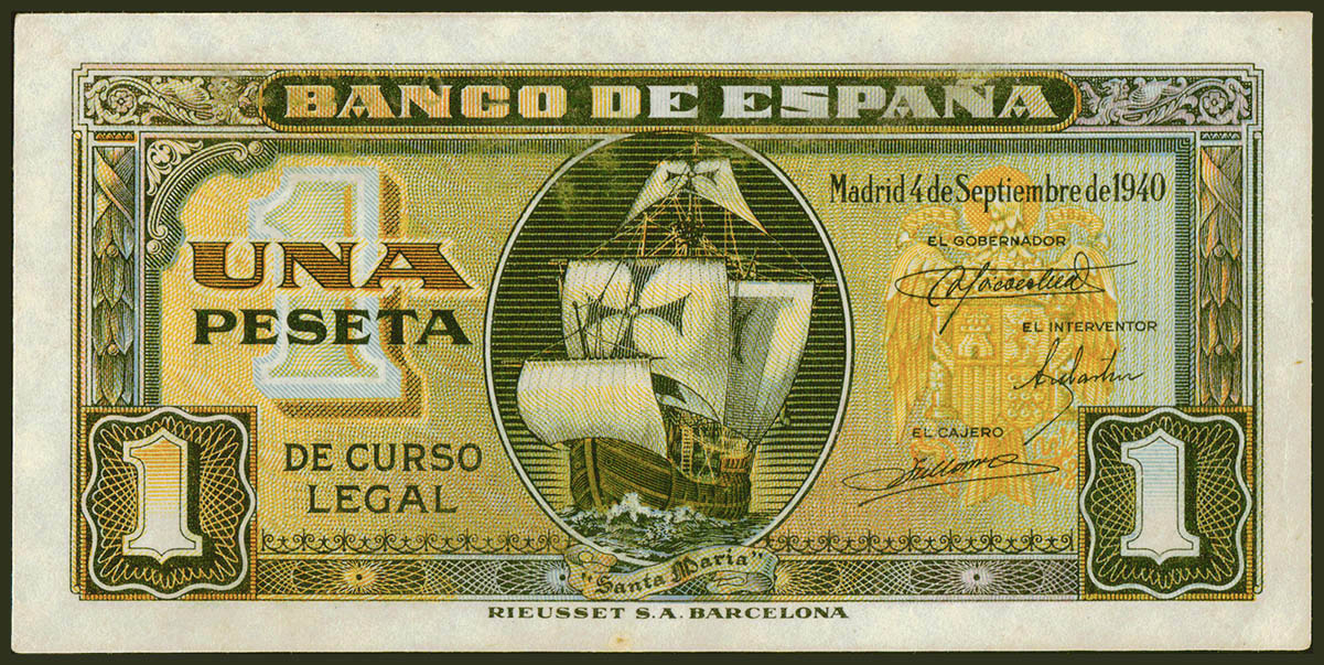 1 Peseta. 4 de Septiembre de 1940. Serie B. (Edifil 2021: 442a). Conserva todo su apresto original. SC--.