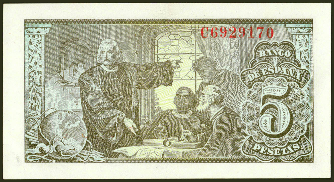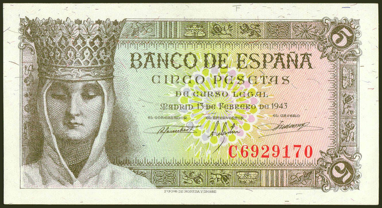5 Pesetas. 13 de Febrero de 1943. Serie C. (Edifil 2021: 446a). Apresto original. SC-.
