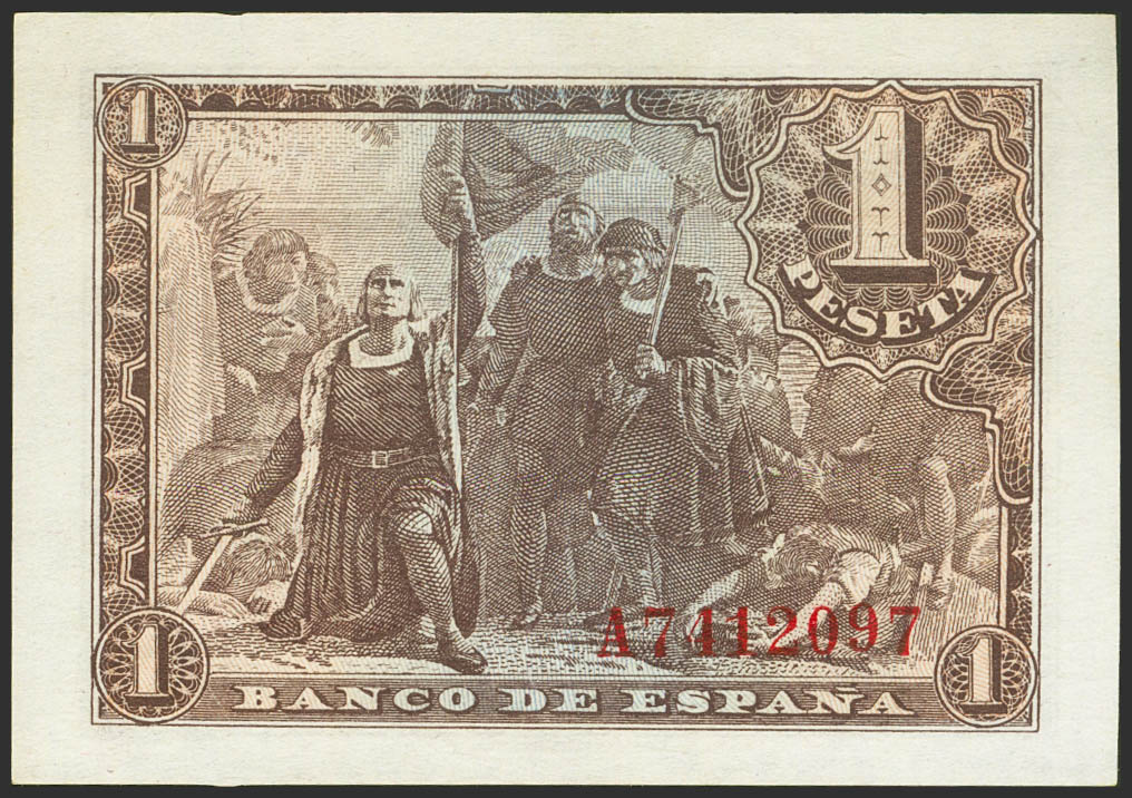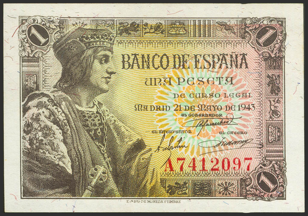 1 Peseta. 21 de Mayo de 1943. Serie A. (Edifil 2021: 447a). Apresto original. SC-.