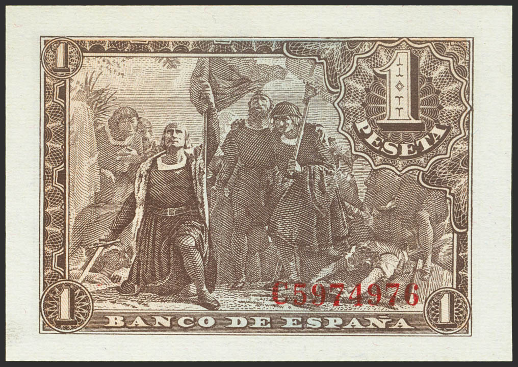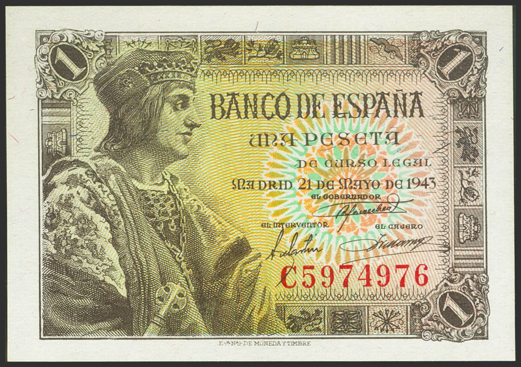 1 Peseta. 21 de Mayo de 1943. Serie C. (Edifil 2021: 447a). Apresto original. SC.