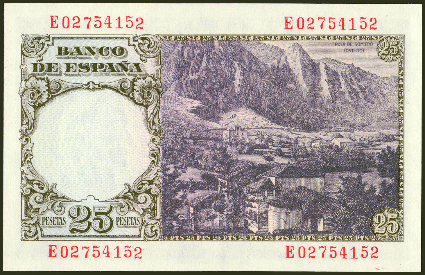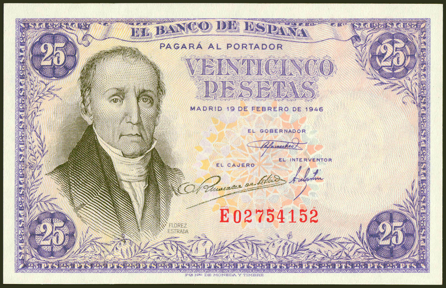 25 Pesetas. 19 de Febrero de 1946. Serie E. (Edifil 2021: 450a). Apresto original. SC--.
