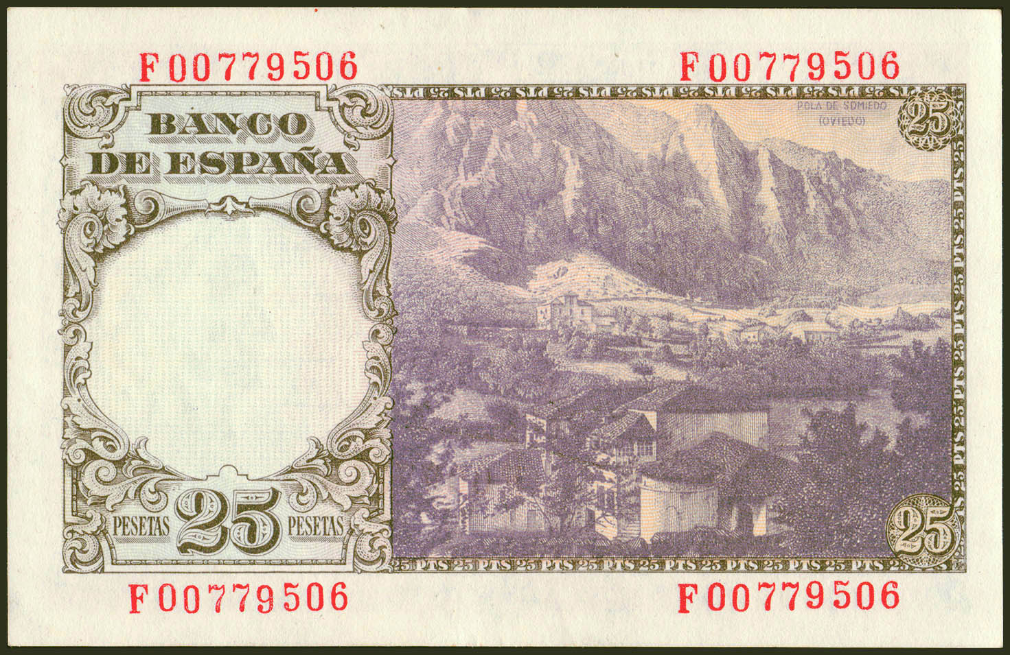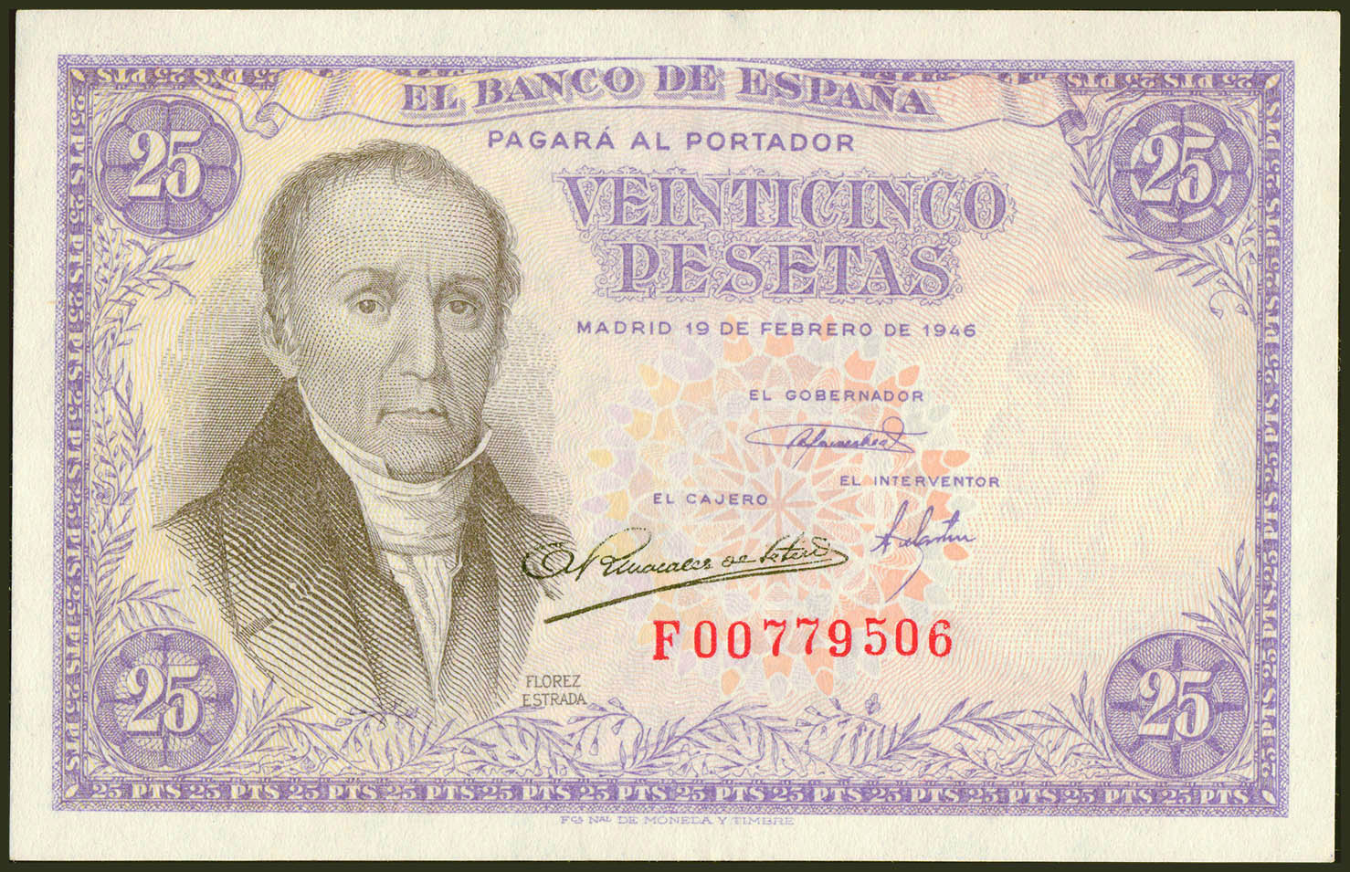 25 Pesetas. 19 de Febrero de 1946. Serie F. (Edifil 2021: 450a). Apresto original. SC-.