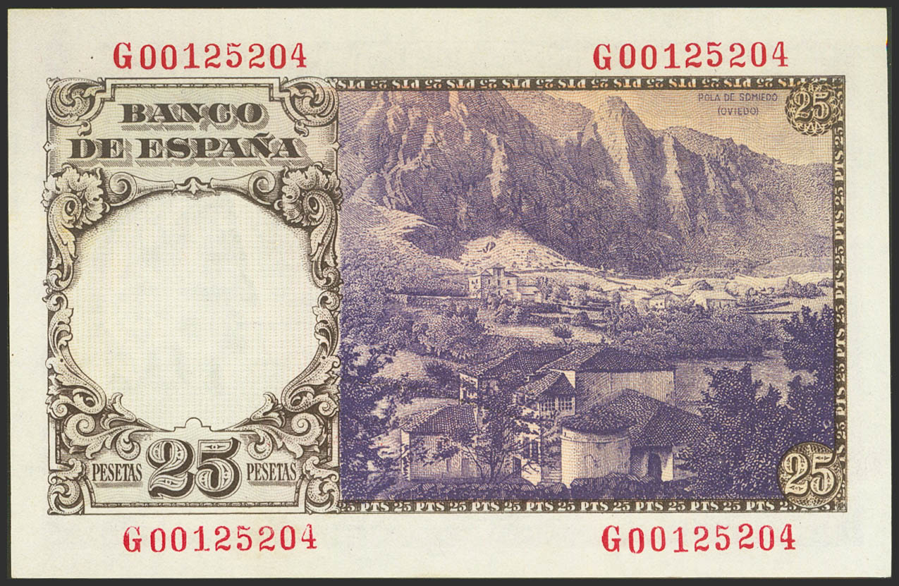 25 Pesetas. 19 de Febrero de 1946. Serie G. (Edifil 2021: 450a). Apresto original. SC.