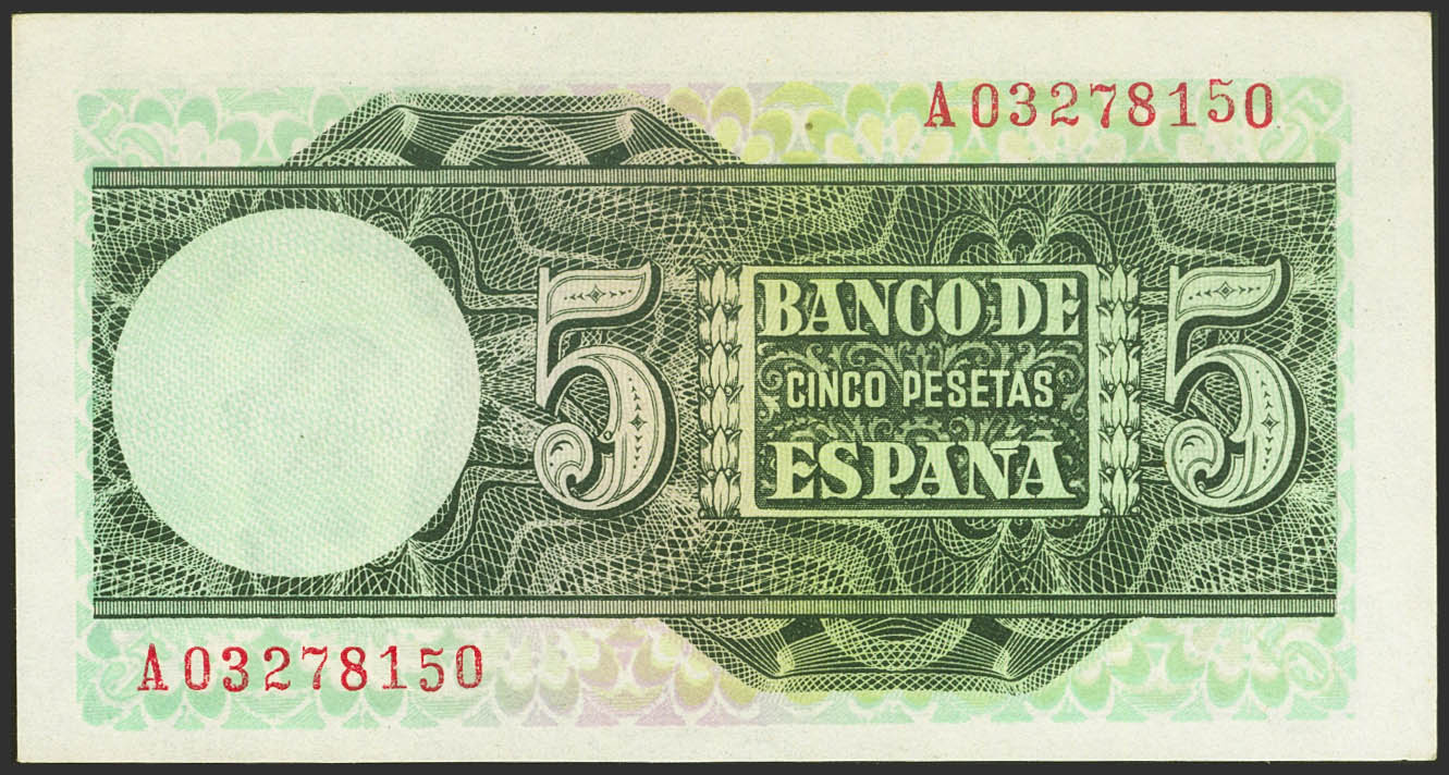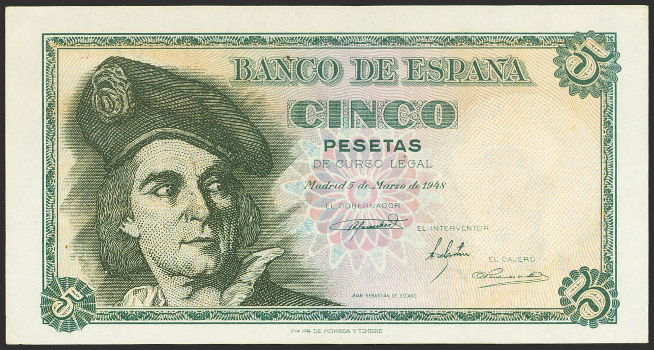 5 Pesetas. 15 de Marzo de 1948. Serie A. (Edifil 2021: 455a). Apresto original. SC-.