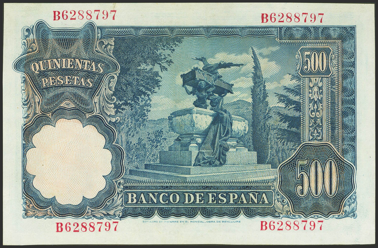 500 Pesetas. 19 de Noviembre de 1951. Serie B. (Edifil 2021: 460a). Conserva todo su apresto original. SC-.