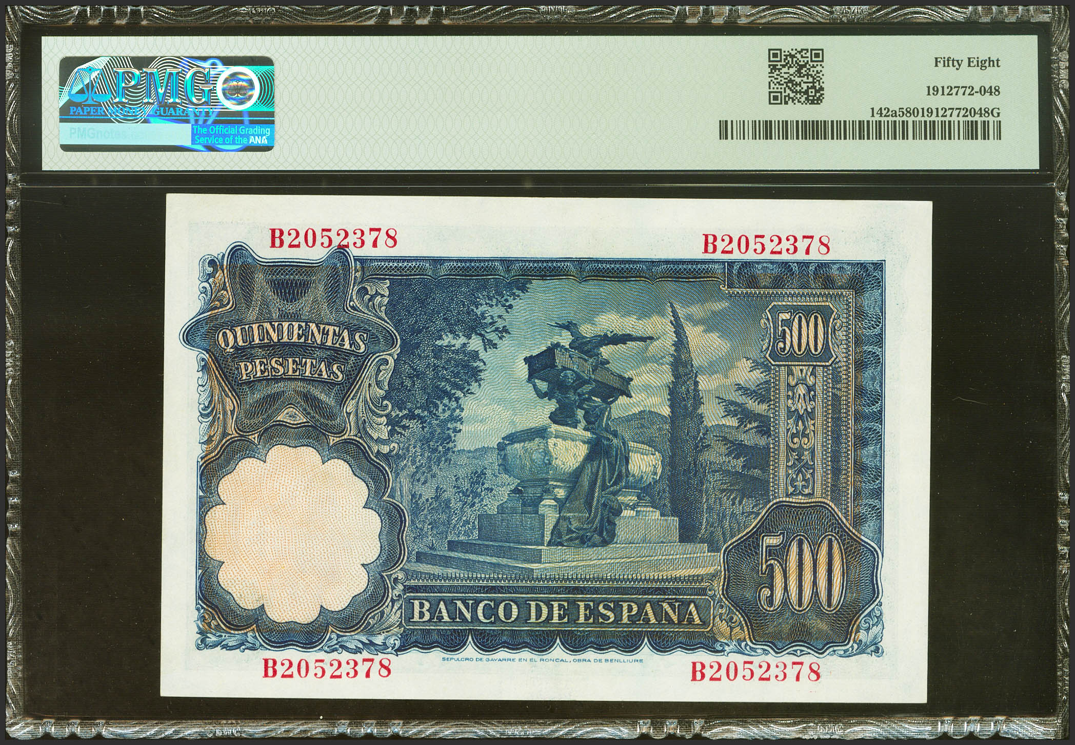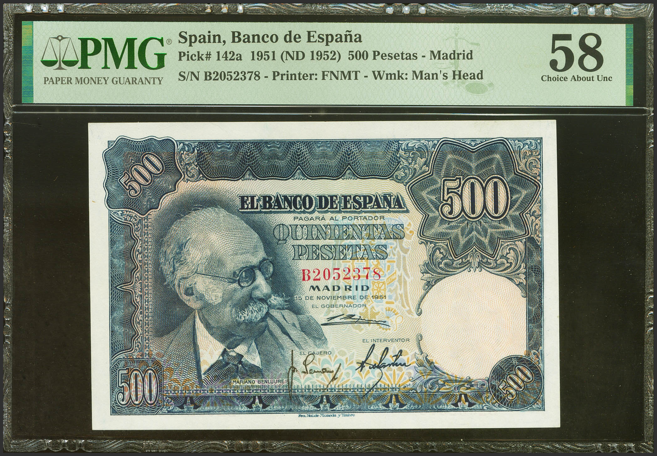 500 Pesetas. 15 de Noviembre de 1951. Serie B. (Edifil 2021: 460a, Pick: 142a). EBC++. Encapsulado PMG58.