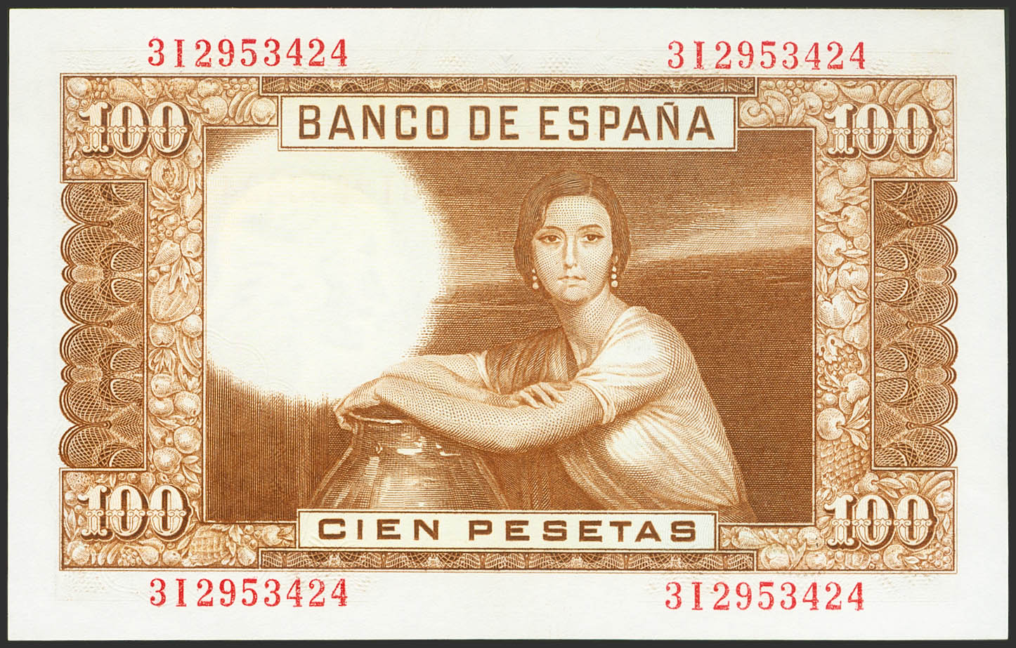 100 Pesetas. 7 de Abril de 1953. Serie 3I. (Edifil 2023: 464c). Apresto original. SC.