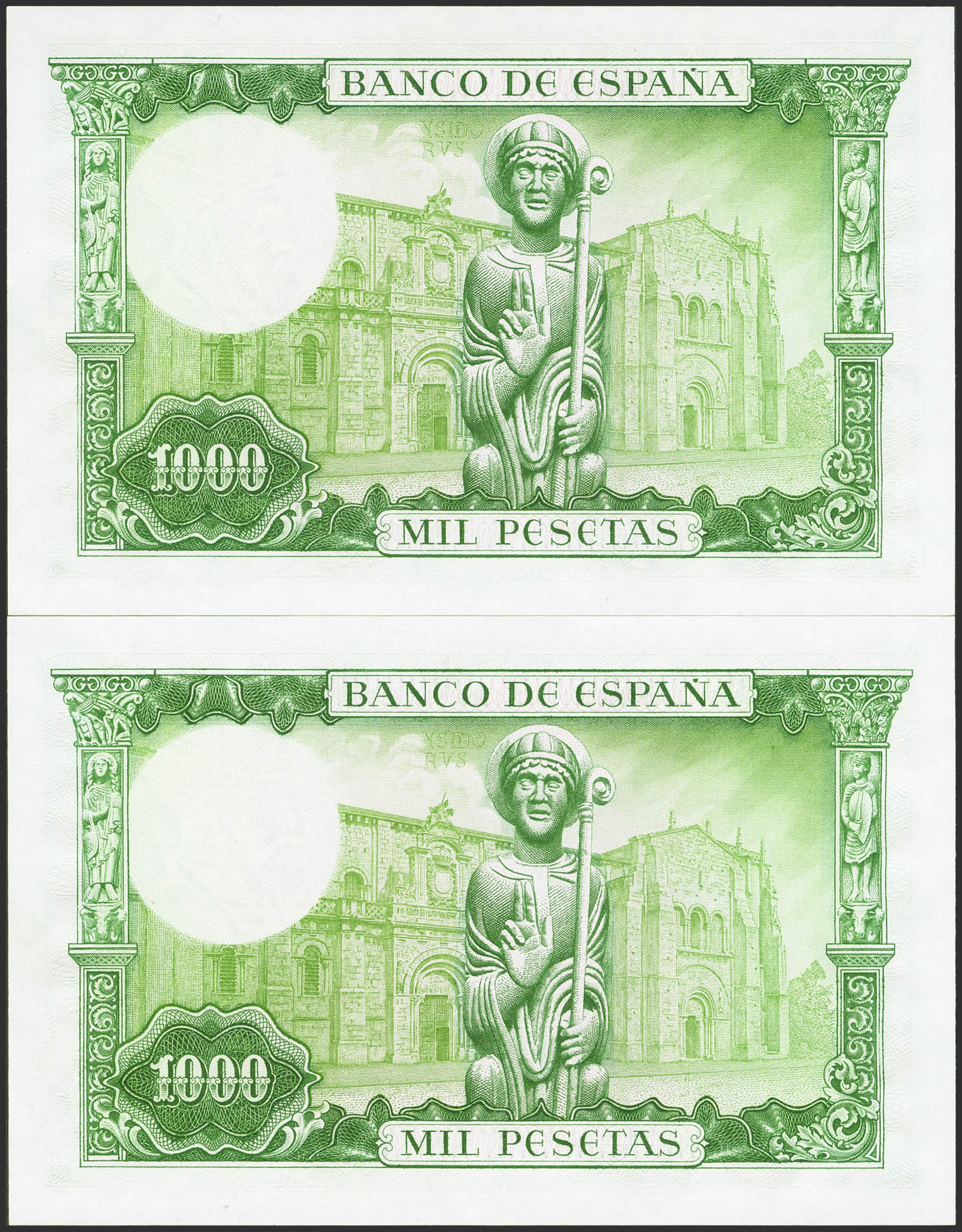 1000 Pesetas. 19 de Noviembre de 1965. Pareja correlativa. Serie J. (Edifil 2021: 471b). Conserva todo su apresto original. SC.