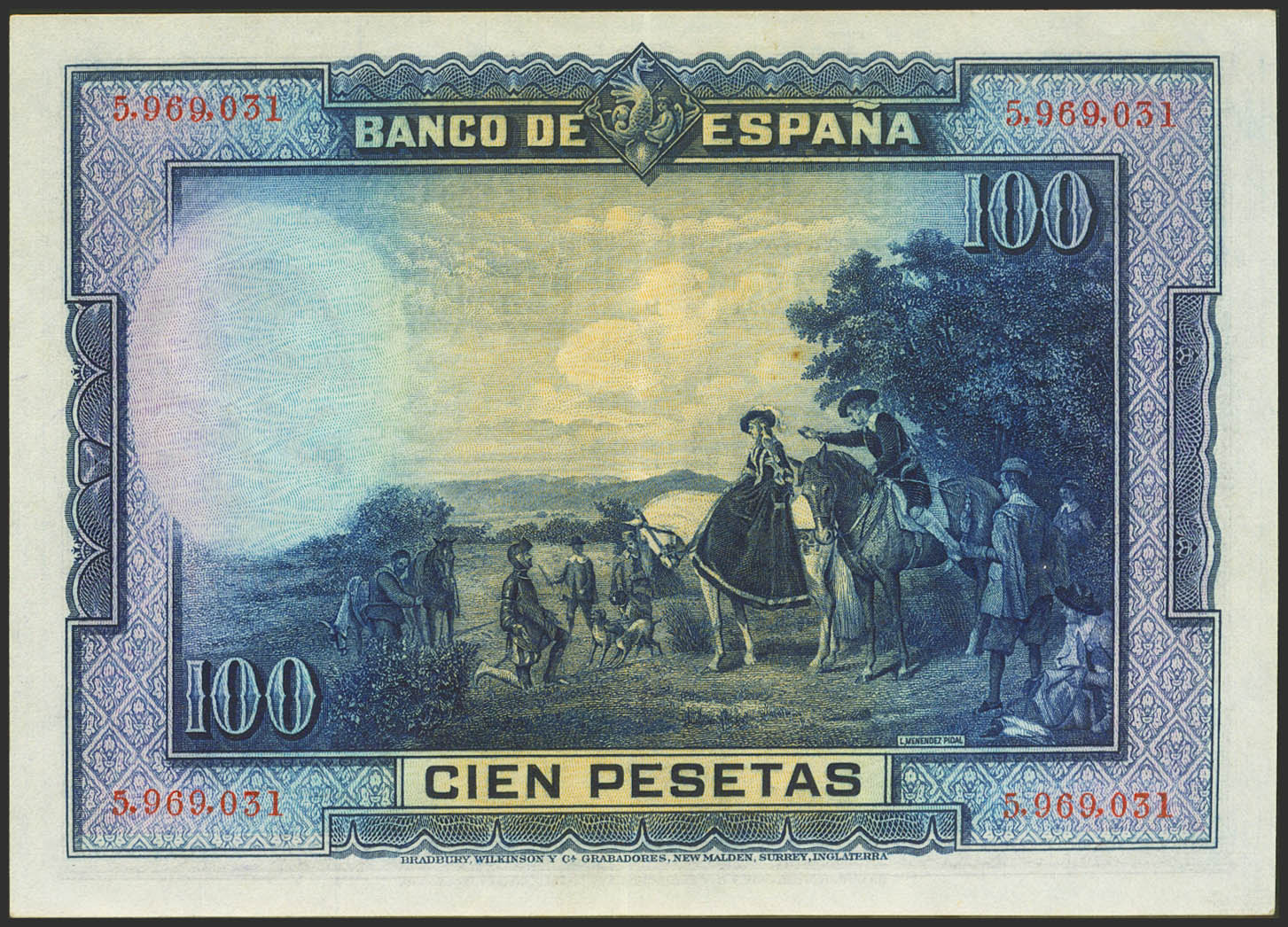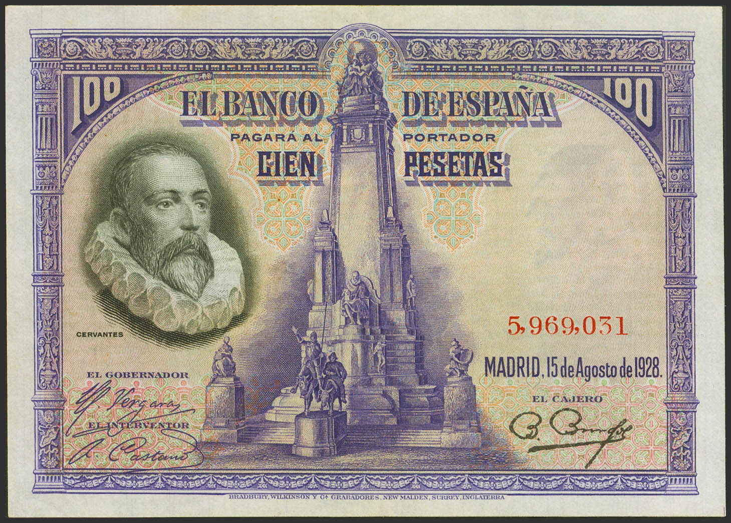100 Pesetas. 15 de Agosto de 1928. Sin serie. (Edifil 2023: 355). Conserva gran parte de su apresto original. EBC++.