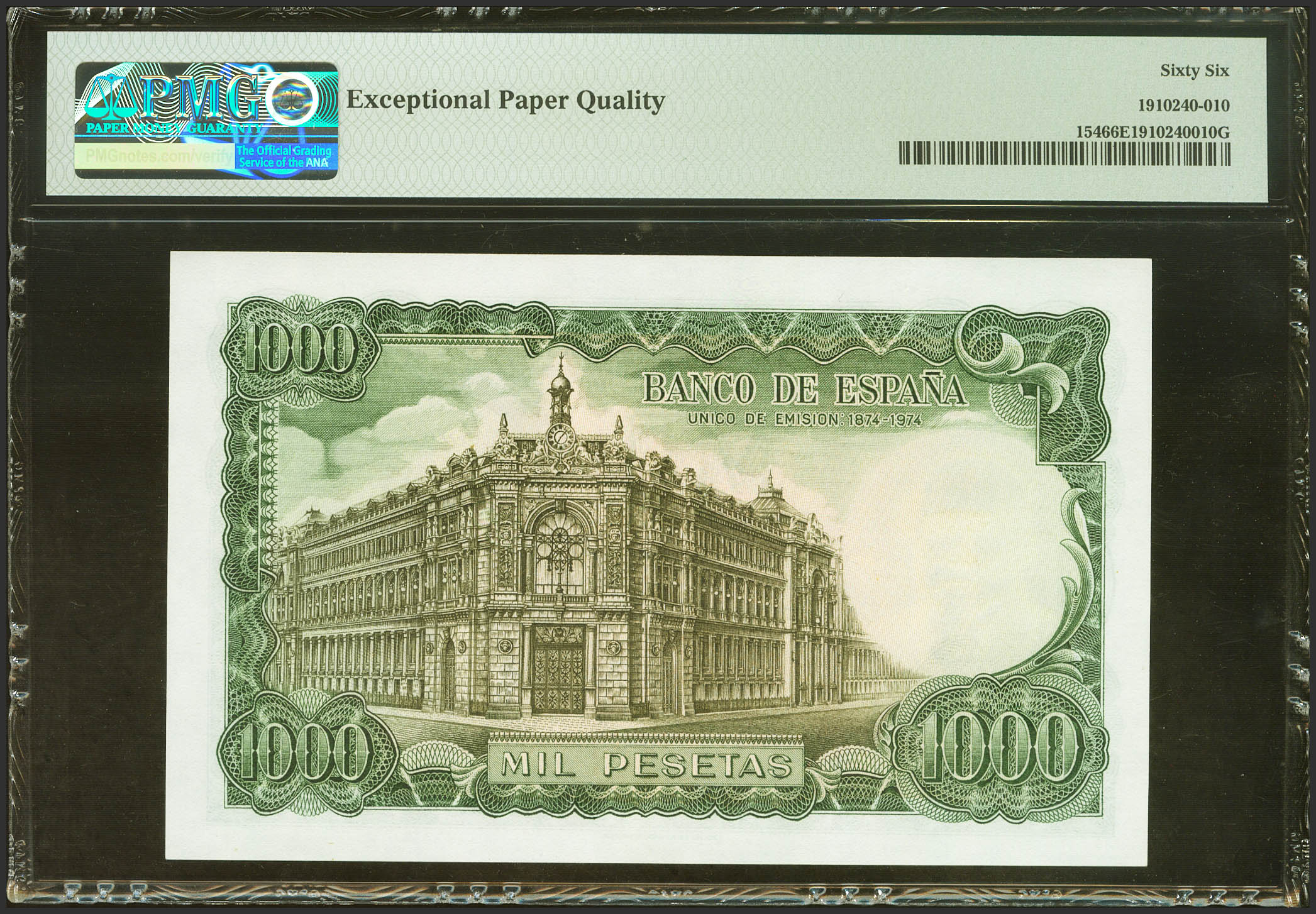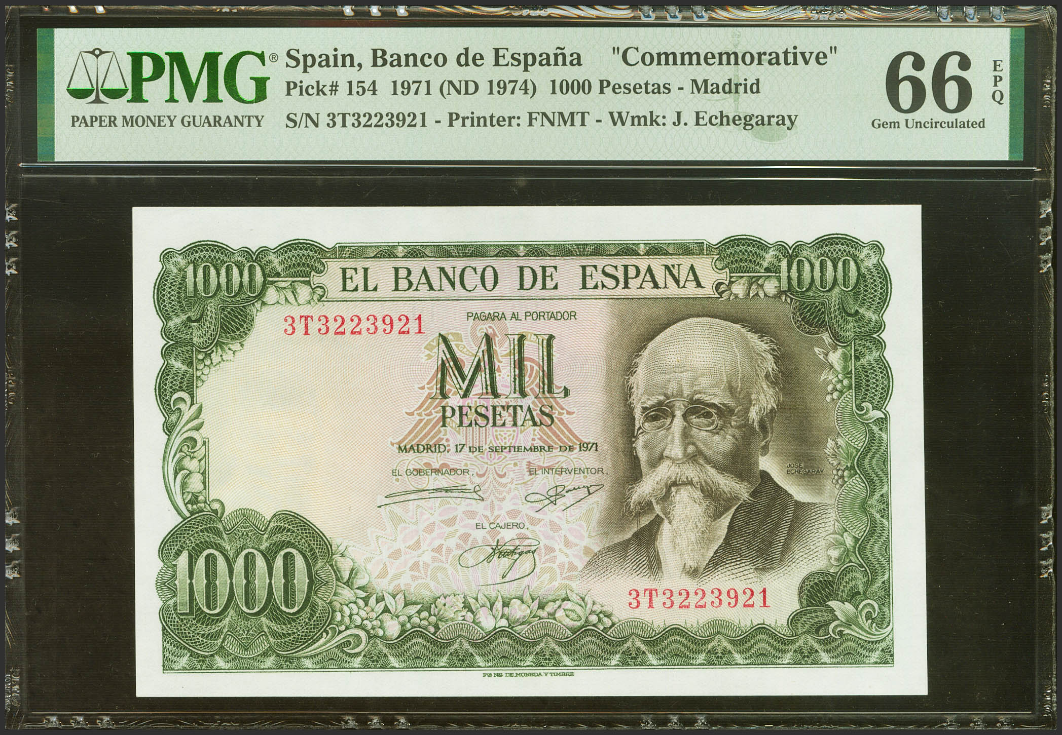 1000 Pesetas. 17 de Septiembre de 1971. Serie 3T. (Edifil 2023: 474c, Pick: 154). Raro en esta excepcional calidad, apresto original. SC. Encapsulado PMG66EPQ.