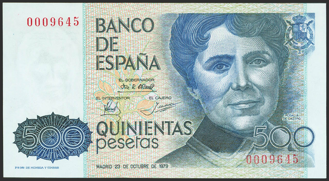 500 Pesetas. 23 de Octubre de 1979. Sin serie y numeración bajísima. (Edifil 2021: 476). Apresto original. SC.