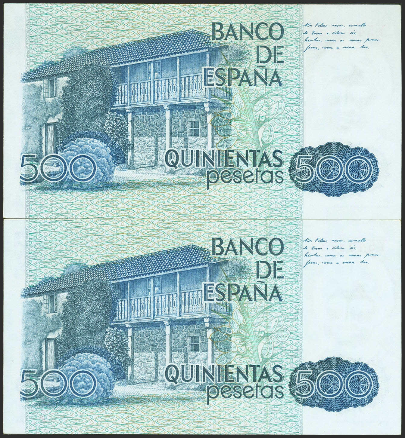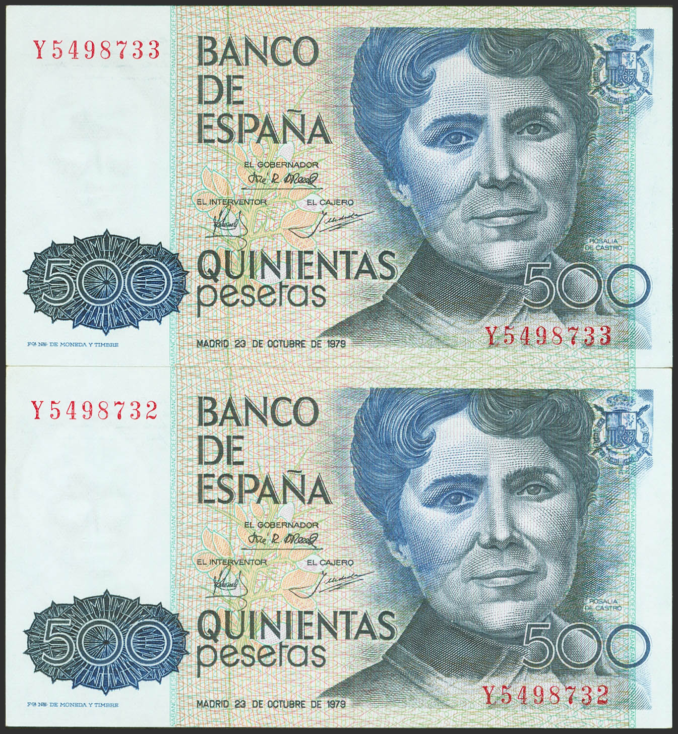 500 Pesetas. 23 de Octubre de 1979. Pareja correlativa. Serie Y. (Edifil 2021: 476a). SC-.