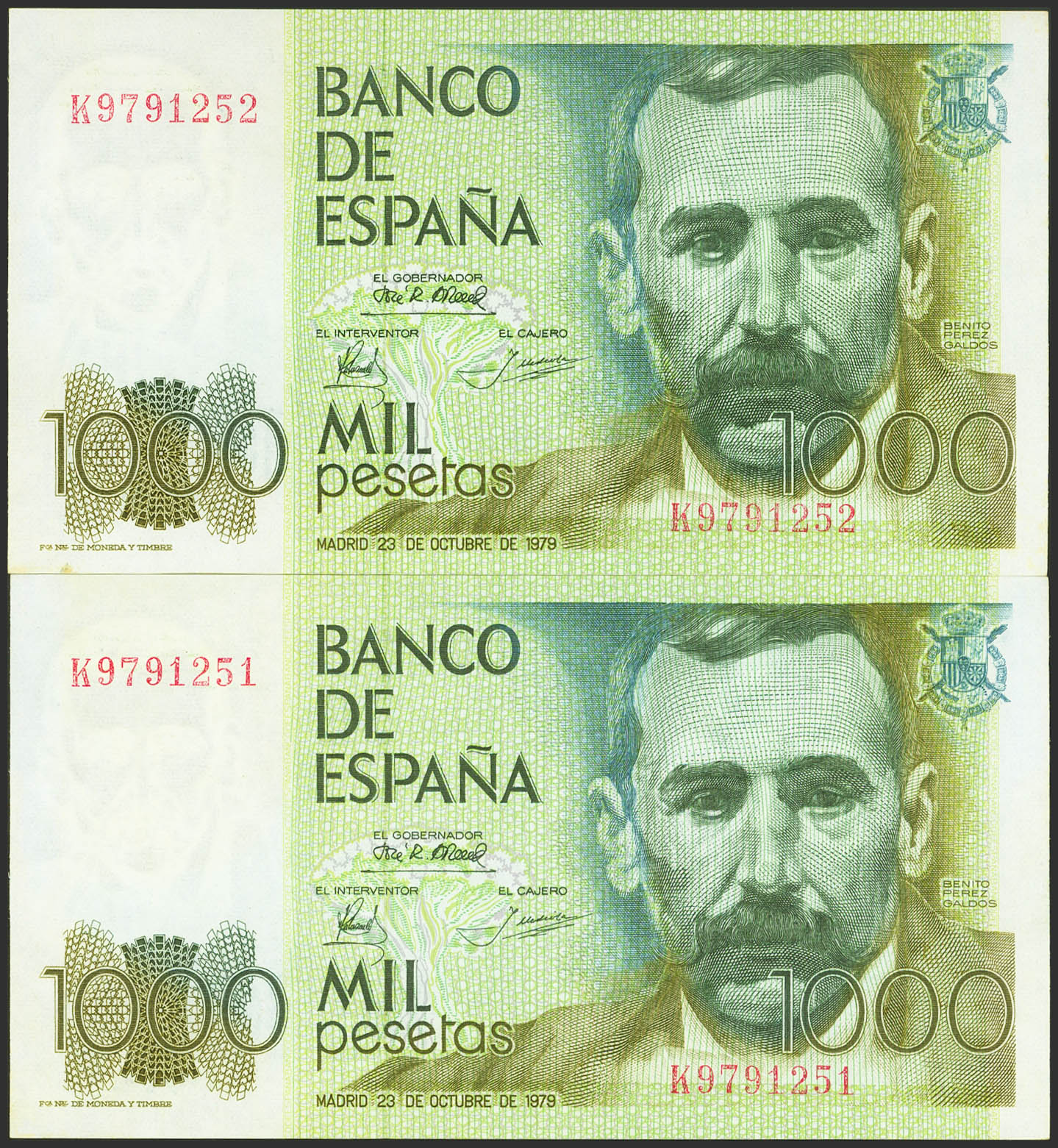 1000 Pesetas. 23 de Octubre de 1979. Pareja correlativa. Serie K. (Edifil 2023: 477a). SC-.