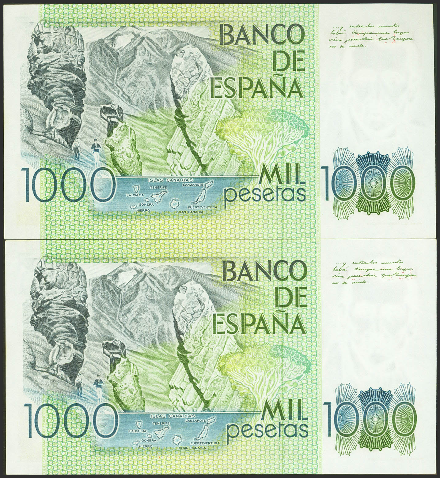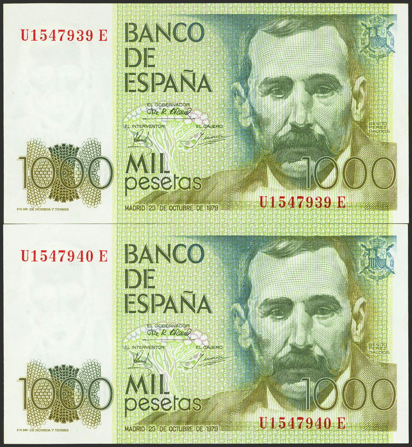 1000 Pesetas. 23 de Octubre de 1979. Pareja correlativa. Serie U-E. (Edifil 2023: 477a). SC-.