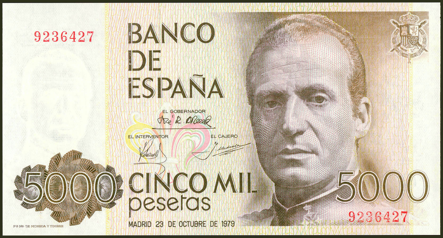5000 Pesetas. 23 de Octubre de 1979. Sin serie. (Edifil 2021: 478). SC.