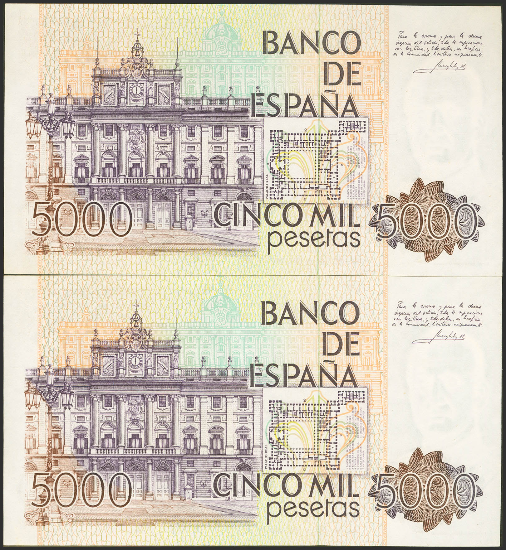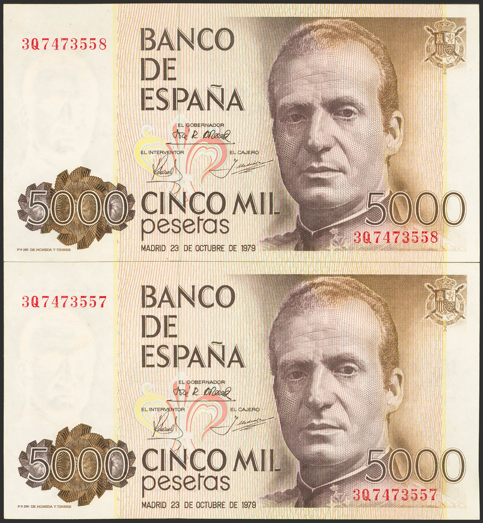 5000 Pesetas. 23 de Octubre de 1979. Pareja correlativa. Serie 3Q. (Edifil 2023: 478a). SC.