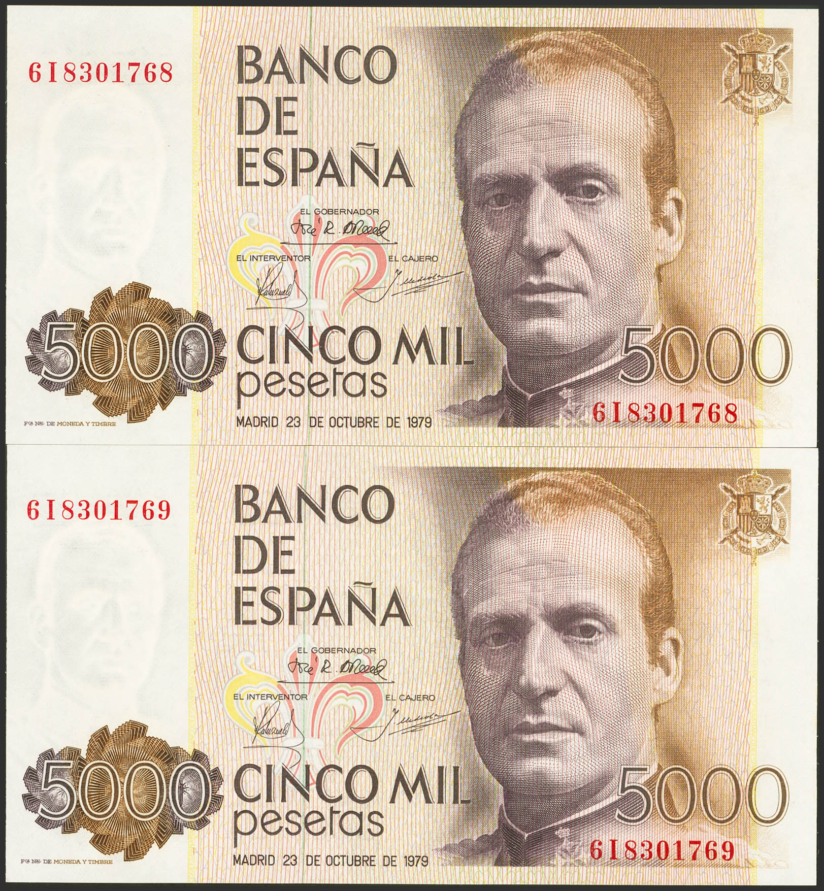 5000 Pesetas. 23 de Octubre de 1979. Pareja correlativa. Serie 6I. (Edifil 2023: 478a). SC.