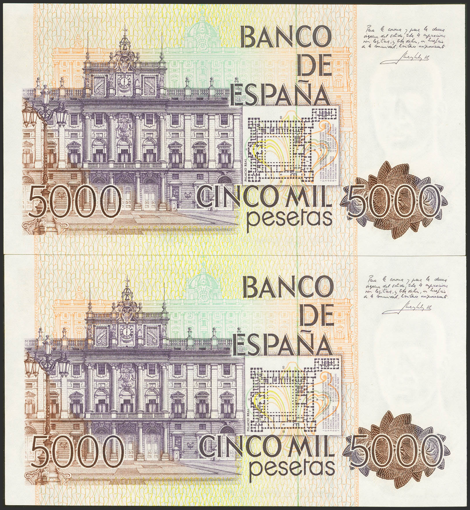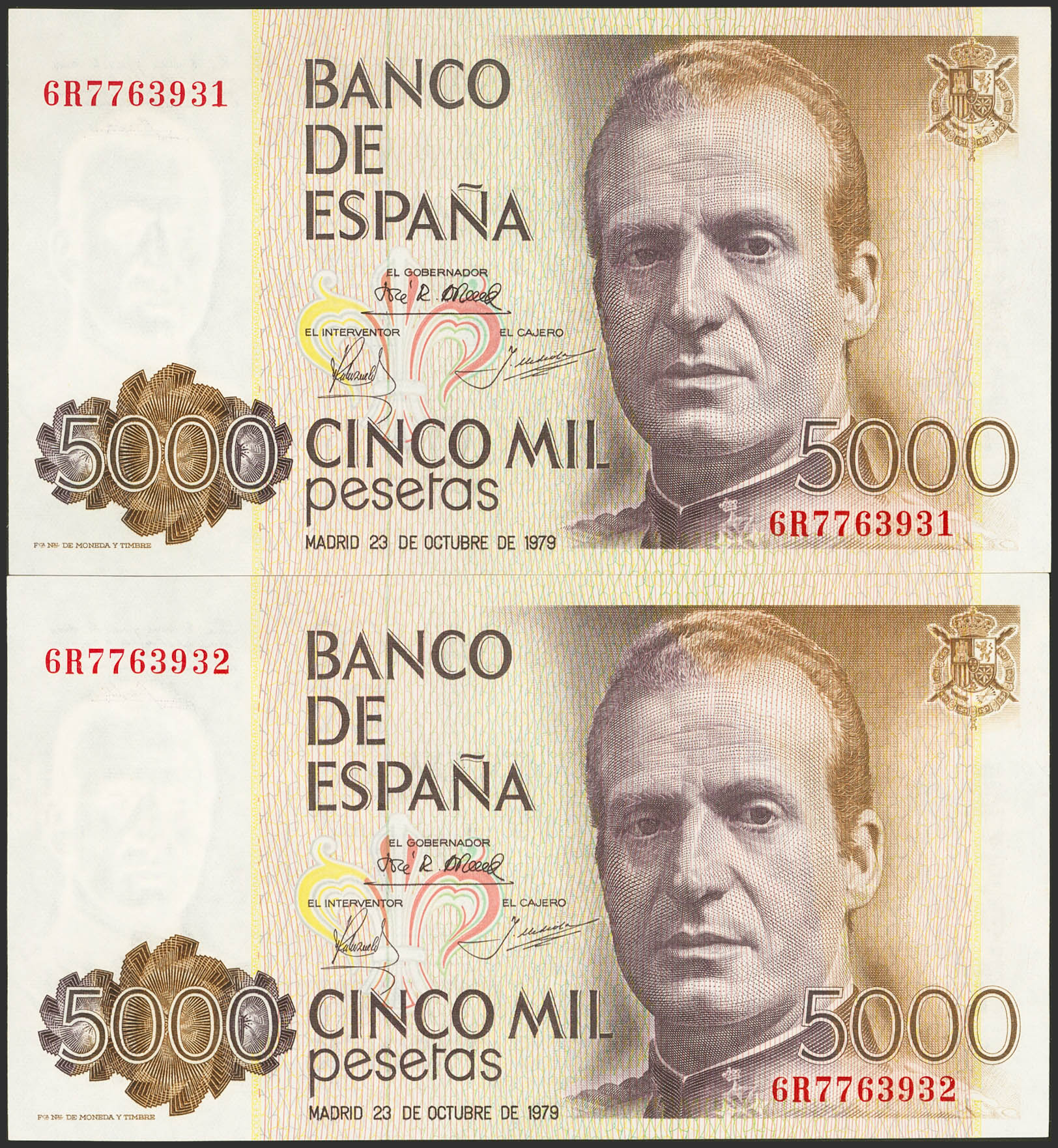 5000 Pesetas. 23 de Octubre de 1979. Pareja correlativa. Serie 6R. (Edifil 2023: 478a). SC.