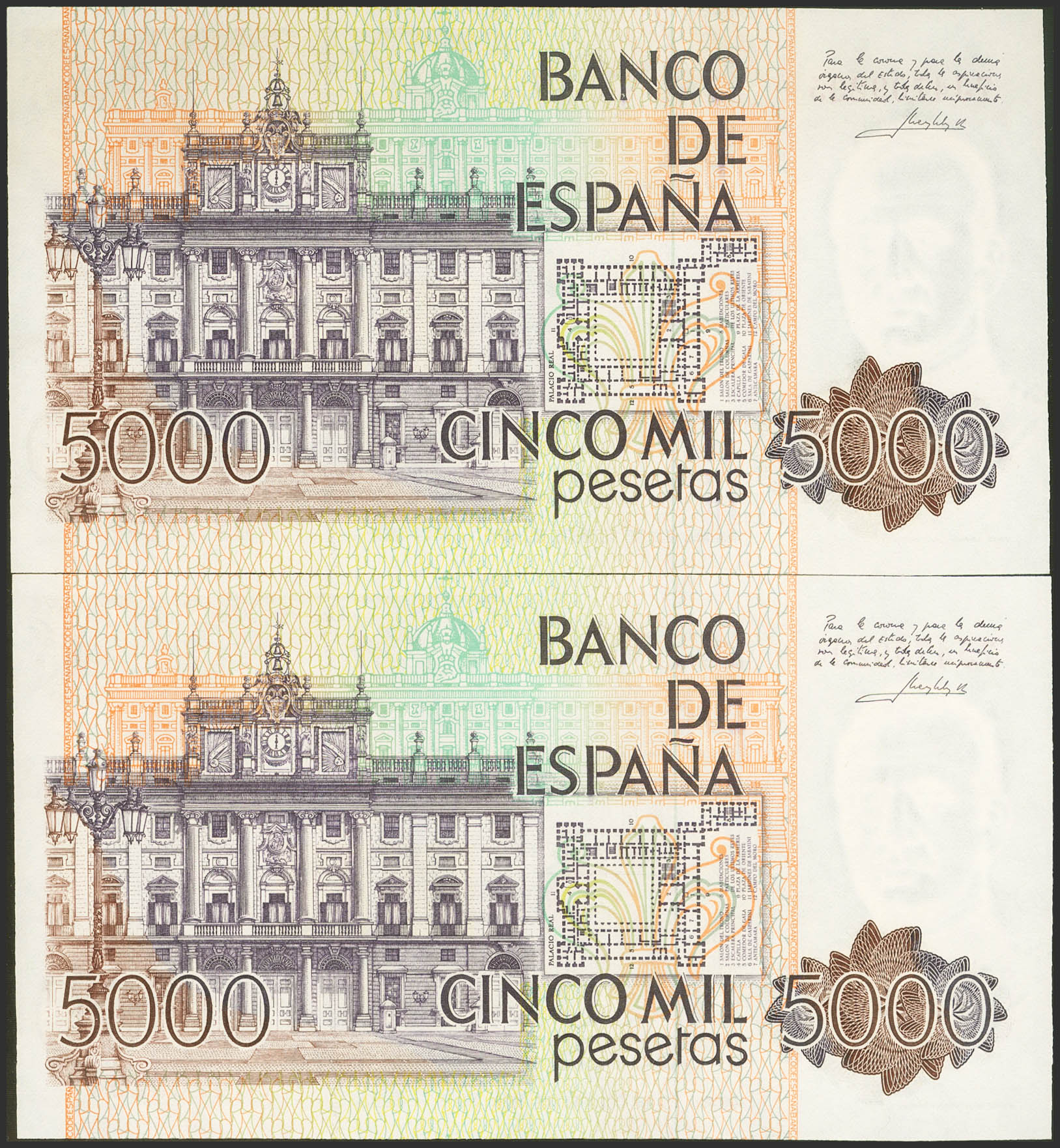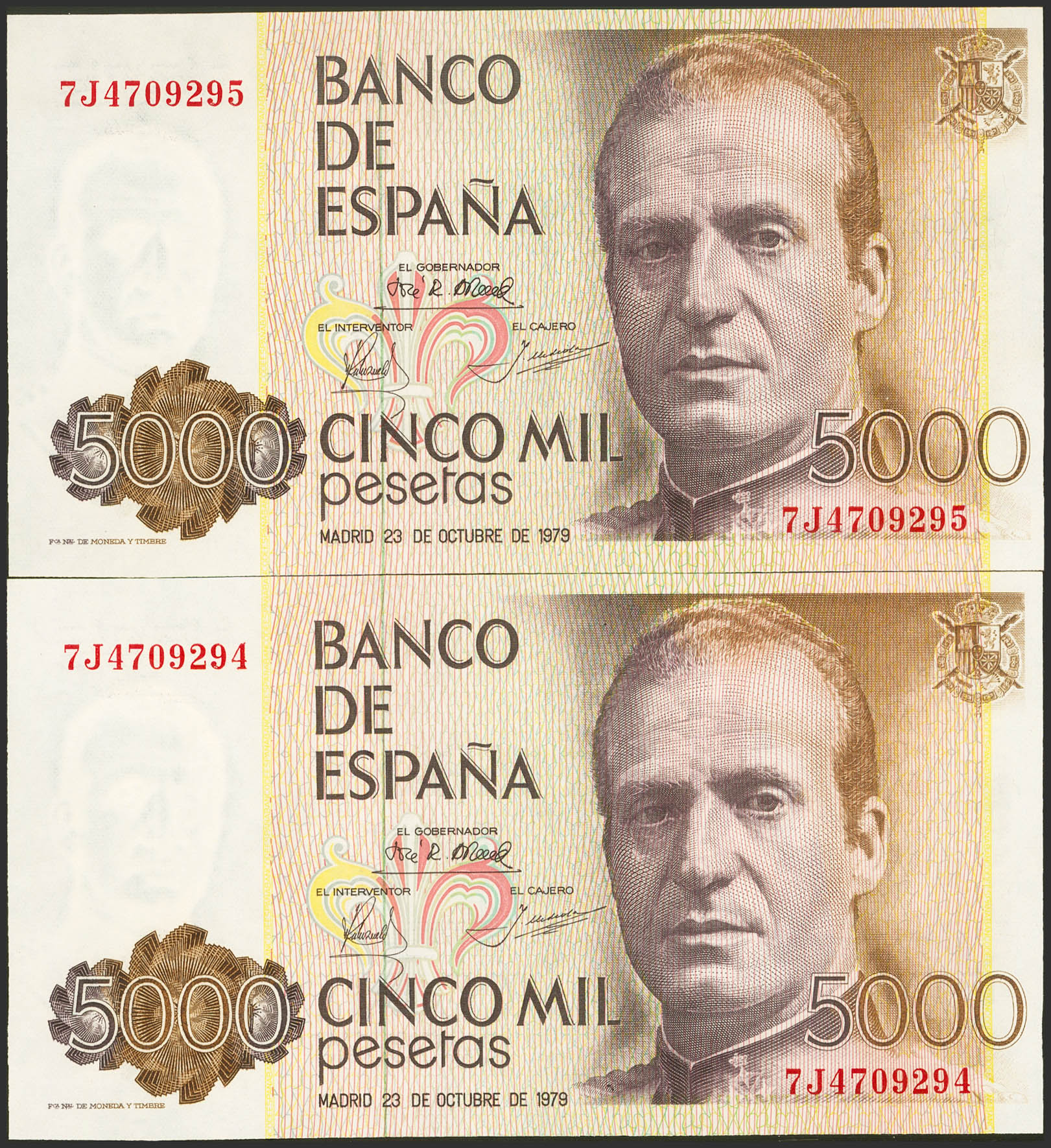 5000 Pesetas. 23 de Octubre de 1979. Pareja correlativa. Serie 7J. (Edifil 2023: 478a). SC.