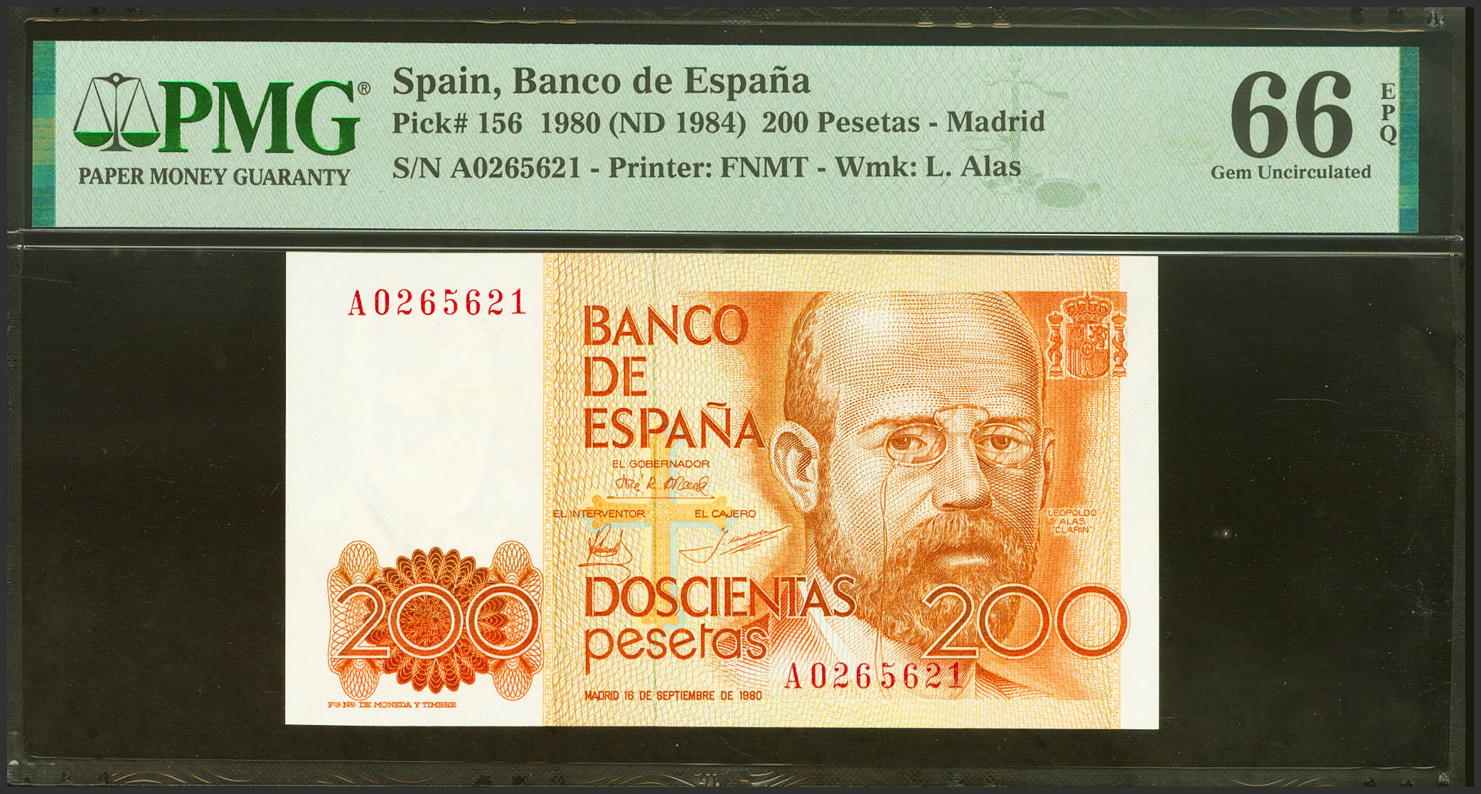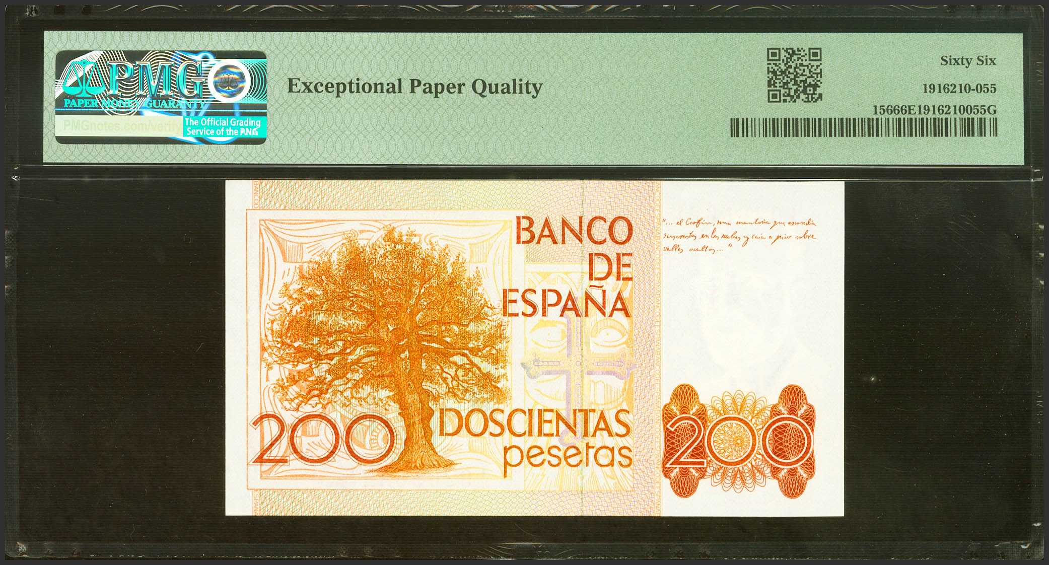 200 Pesetas. 16 de Septiembre de 1980. Serie A. (Edifil 2023: 480a, Pick: 156). SC. Encapsulado PMG66EPQ.