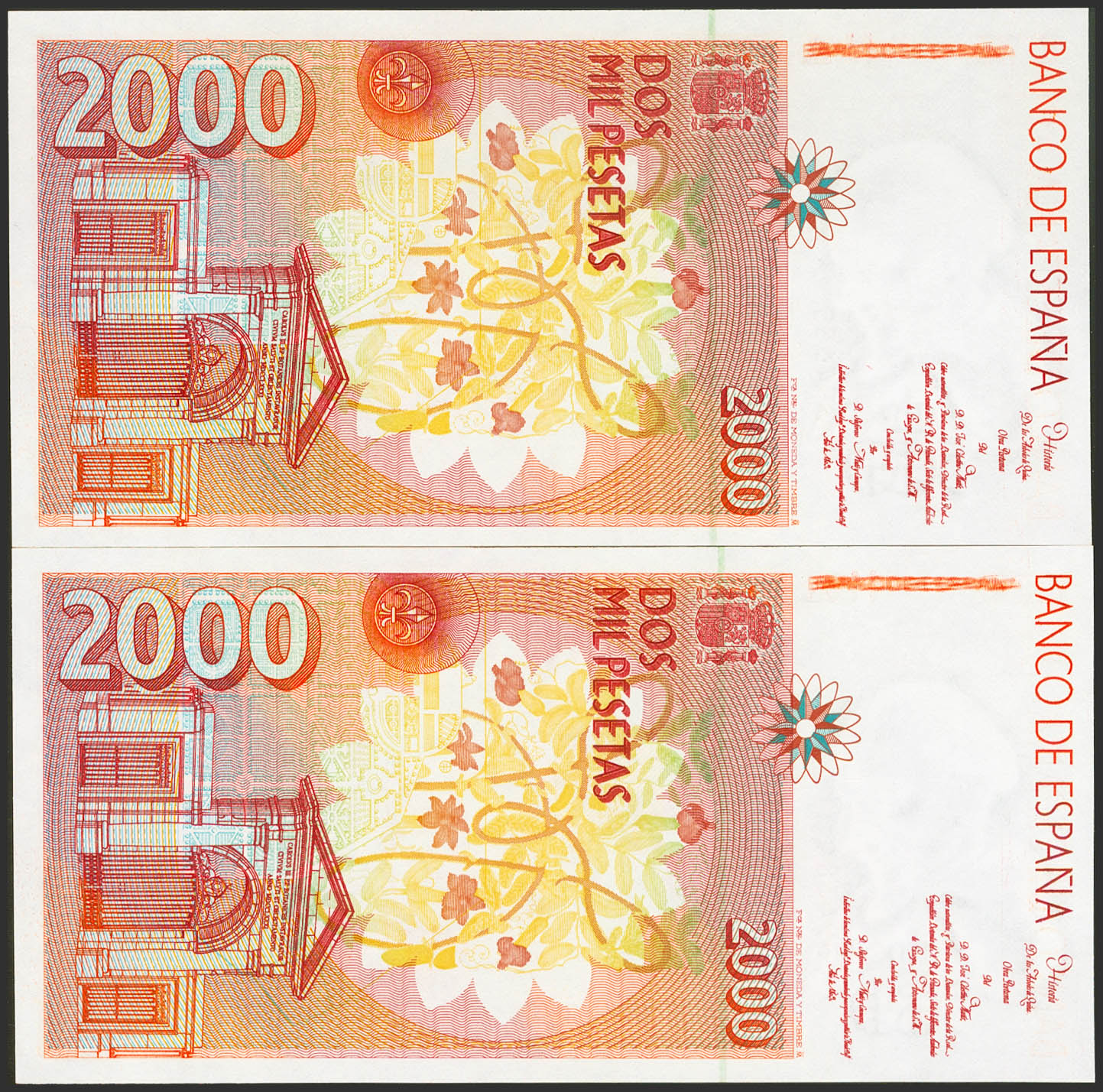 2000 Pesetas. 24 de Abril de 1992. Pareja correlativa. Sin serie. (Edifil 2023: 482). SC.