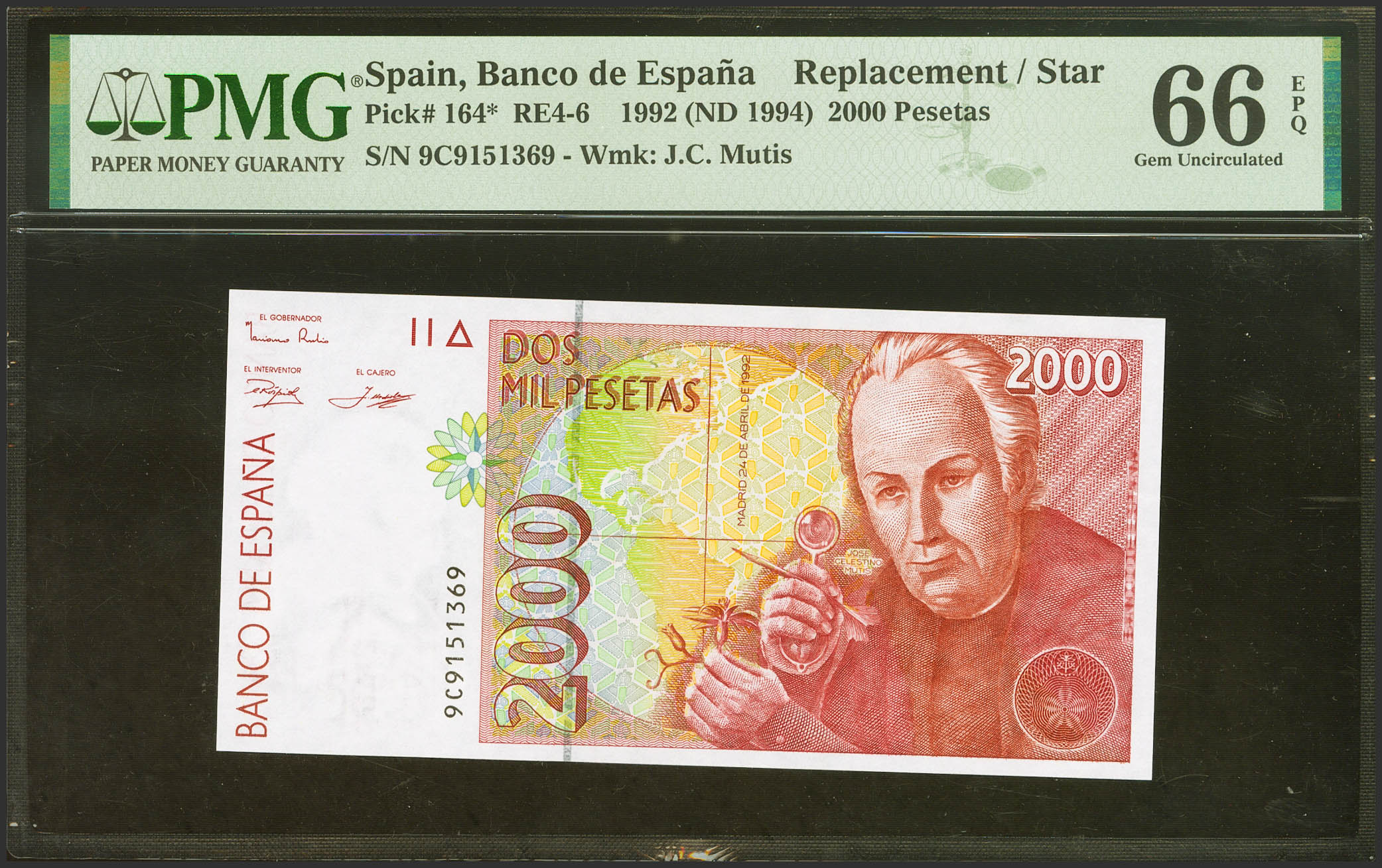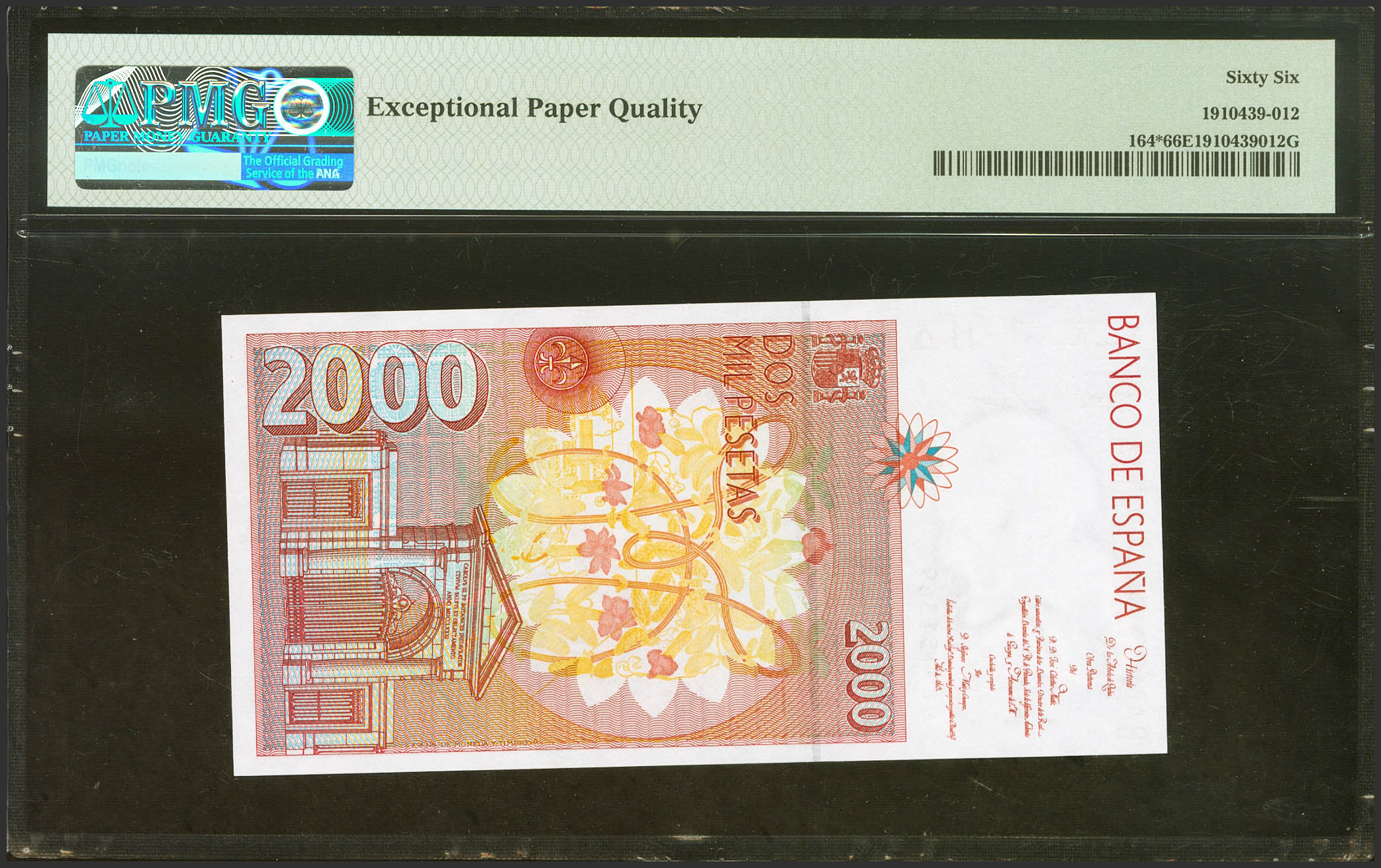 2000 Pesetas. 24 de Abril de 1992. Serie especial 9C. (Edifil 2021: 482Ab, Pick: 164*). Raro en esta calidad. SC. Encapsulado PMG66EPQ.