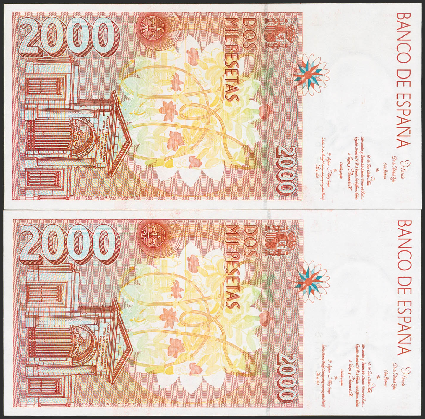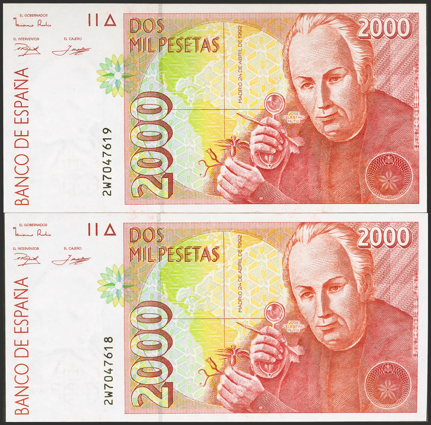 2000 Pesetas. 24 de Abril de 1992. Pareja correlativa. Serie 2W. (Edifil 2023: 482Aa). SC