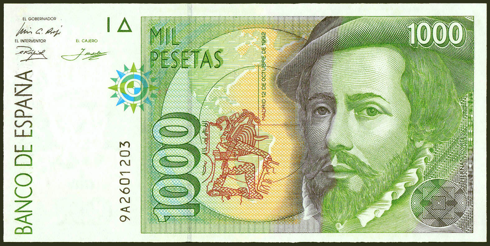 1000 Pesetas. 12 de Octubre de 1992. Serie especial 9A. (Edifil 2021: 483c). SC-.