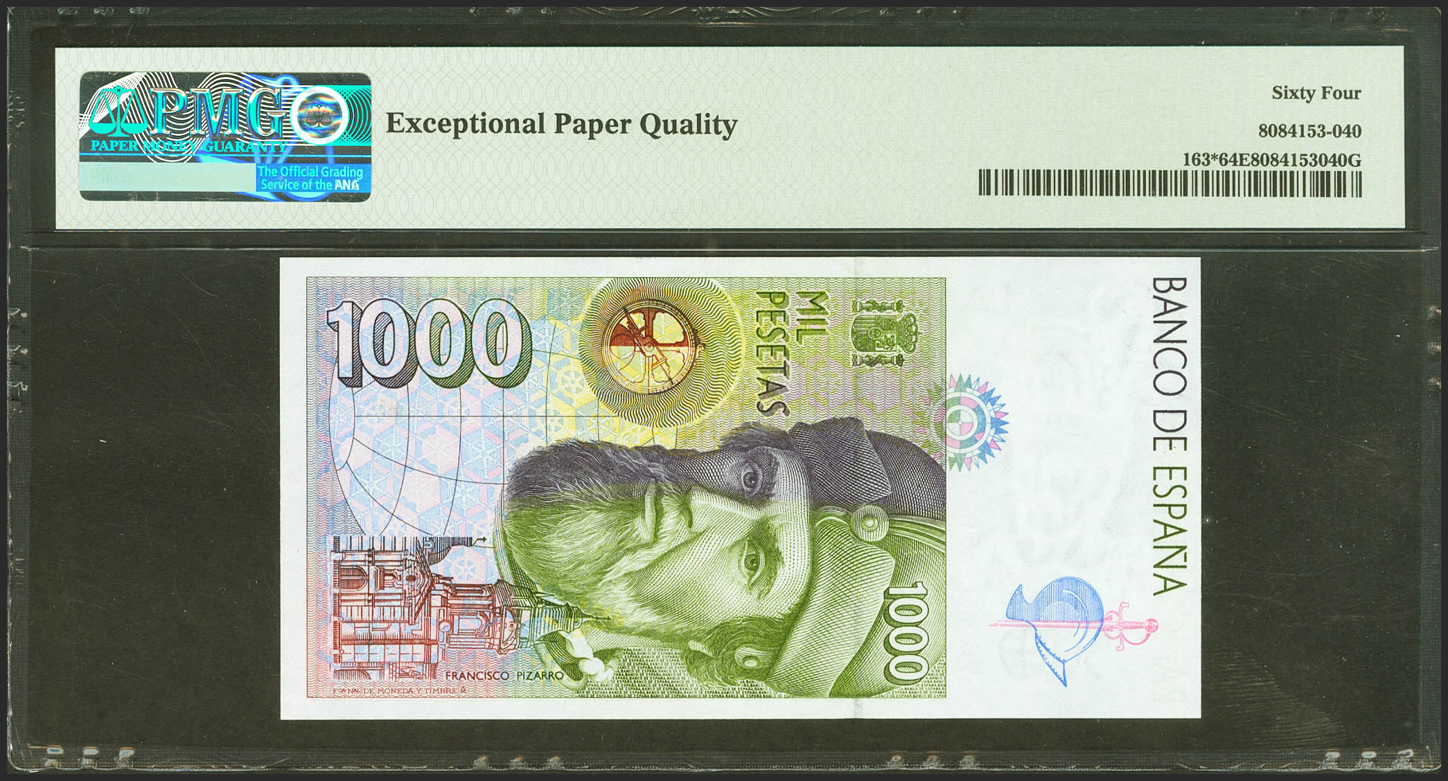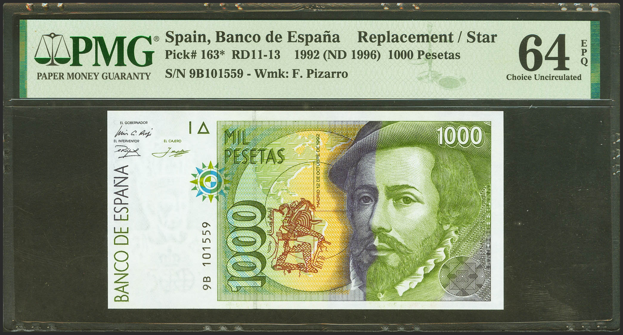 1000 Pesetas. 12 de Octubre de 1992. Serie especial 9B. (Edifil 2021: 483c, Pick: 163*). SC. Encapsulado PMG64EPQ.