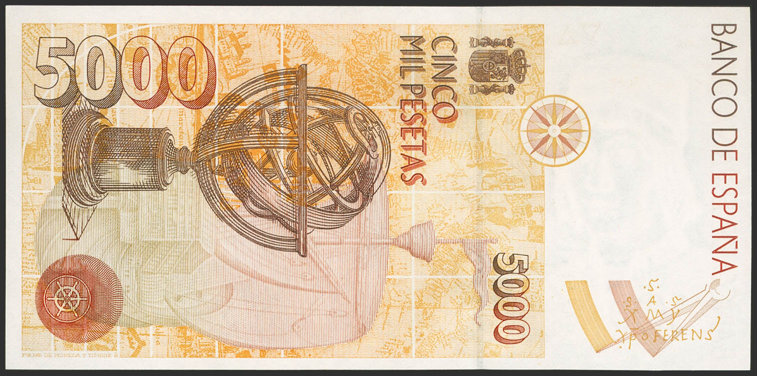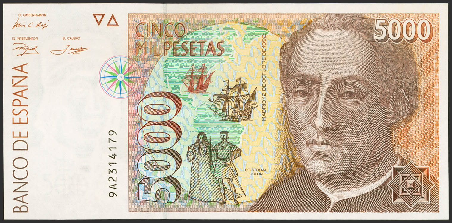 5000 Pesetas. 12 de Octubre de 1992. Serie especial 9A. (Edifil 2023: 484b). SC.