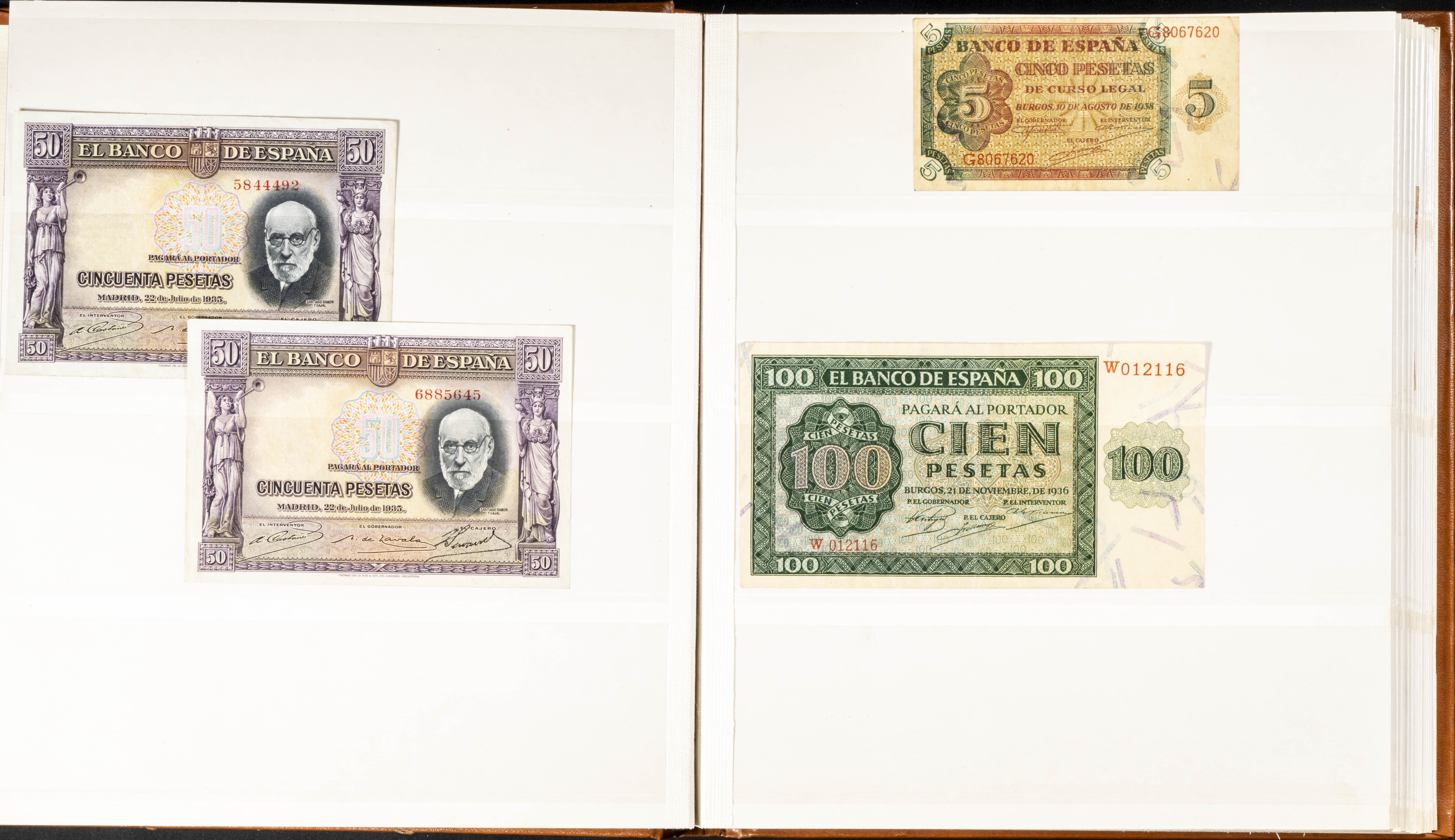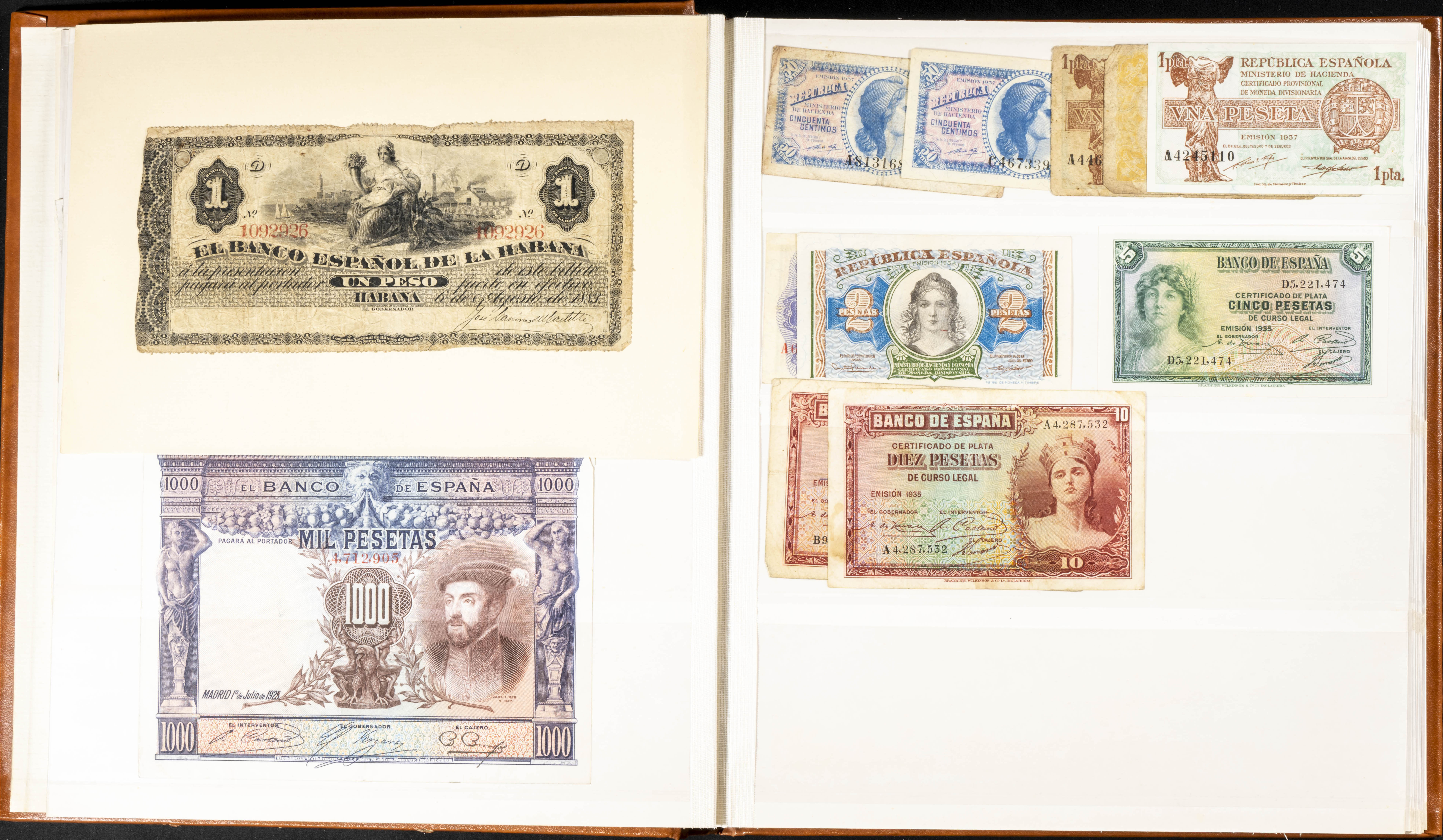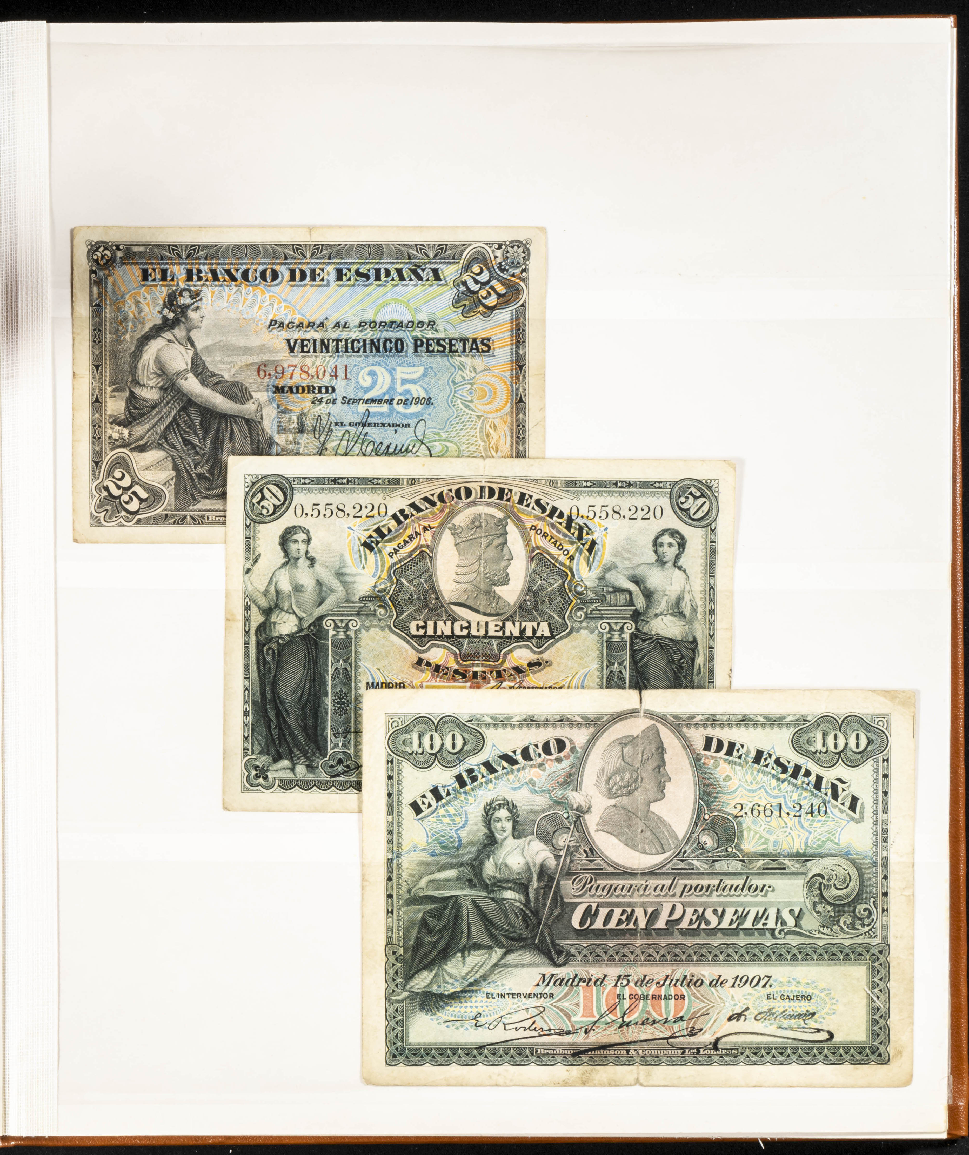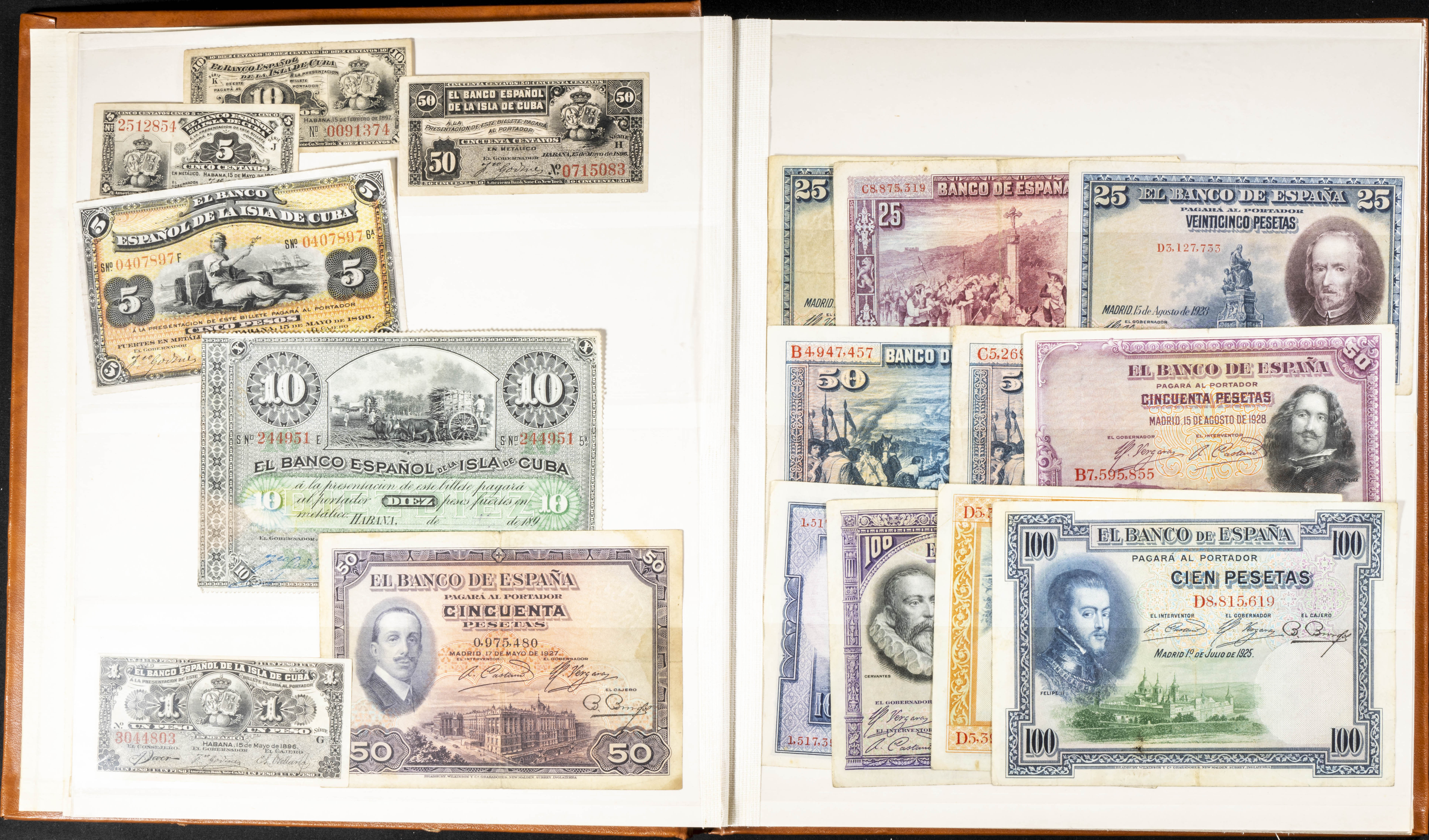 Precioso e interesante conjunto de más de 100 billetes del Banco de España y del Banco Español en la Isla de Cuba, de diversas emisiones y en diferentes calidades. A EXAMINAR.