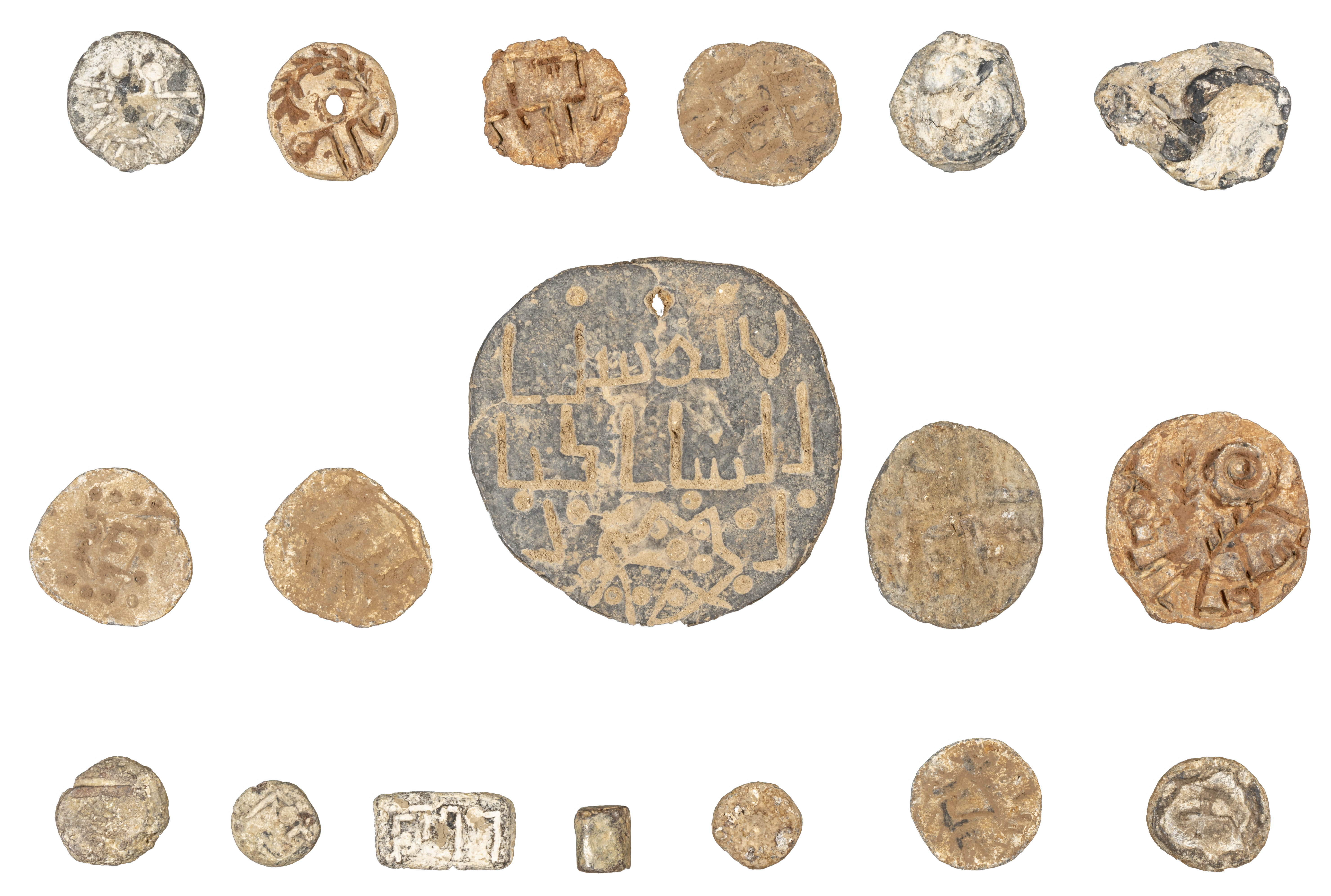Interesantísimo conjunto de 18 piezas de plomo clasificadas por Gaspariño como Fichas, de diferentes pesos y medidas. Este conjunto es muy atractivo para realizar un gran estudio de este tipo de piezas. IMPRESCINDIBLE EXAMINAR.