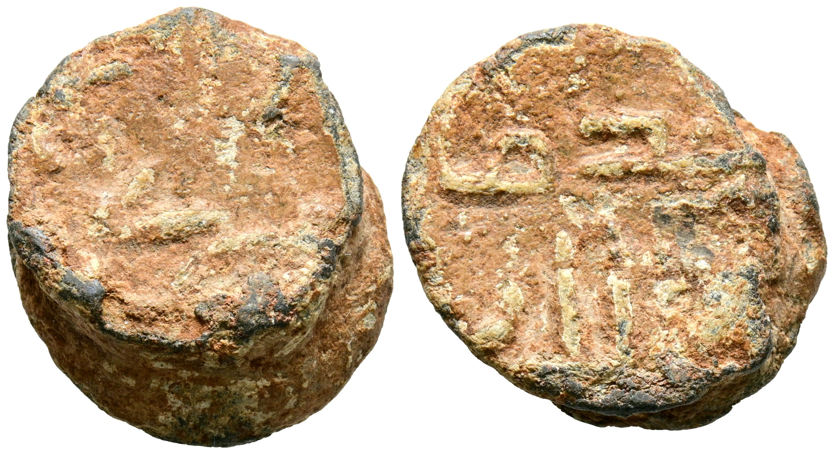 PERIODO DE CONQUISTA. Sello/Precinto de botín. (Pb. 11,87g/21x19x5mm). 711-756 d.C. Dos líneas en anverso y una en reverso. (Senac/Ibrahim 2017-Tipo 95-111). MBC+. Raro y muy interesante ejemplar.