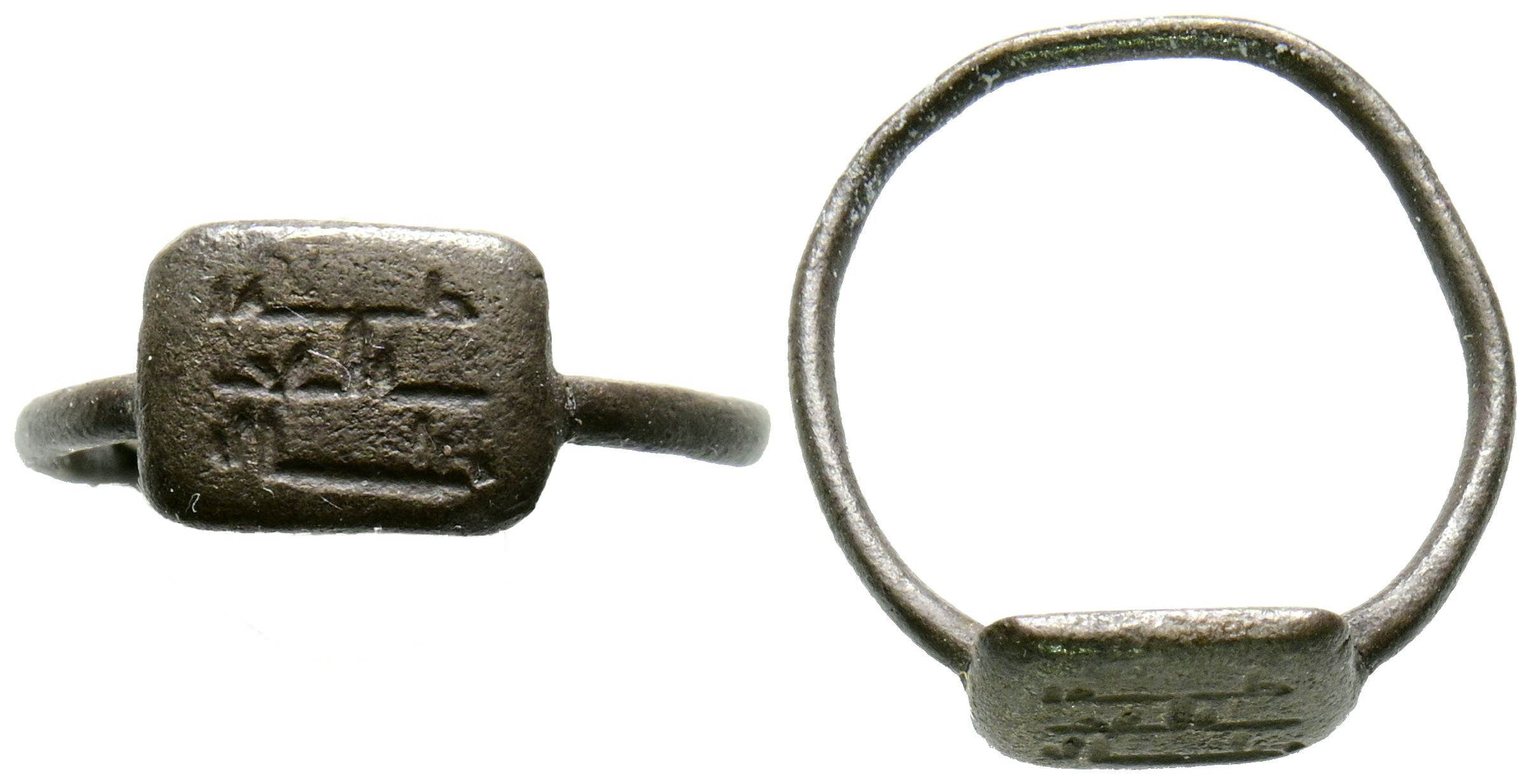 POSIBLEMENTE CALIFAL O EMIRAL. Sello-Anillo. (Ar. 1,06g/17x16mm). Leyenda en tres líneas de escritura en cúfico lineal. MBC+.
