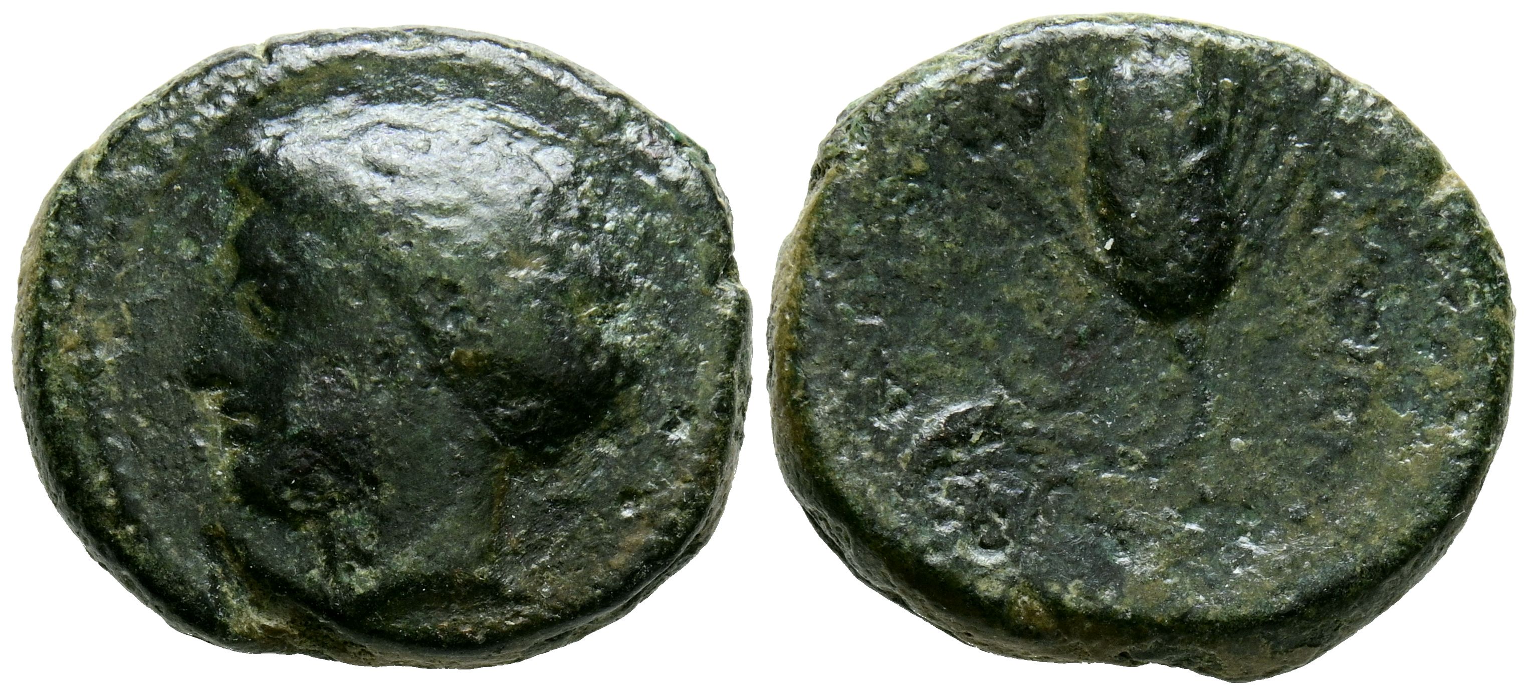 LUCANIA, Herakleia. Ae21. (Ae. 9,20g/21mm). 280-150 a.C. (HGC 1, 1010; HN Italy 1442). Anv: Cabeza laureada de Demeter a izquierda. Rev: Grano, alrededor leyenda griega. MBC-.