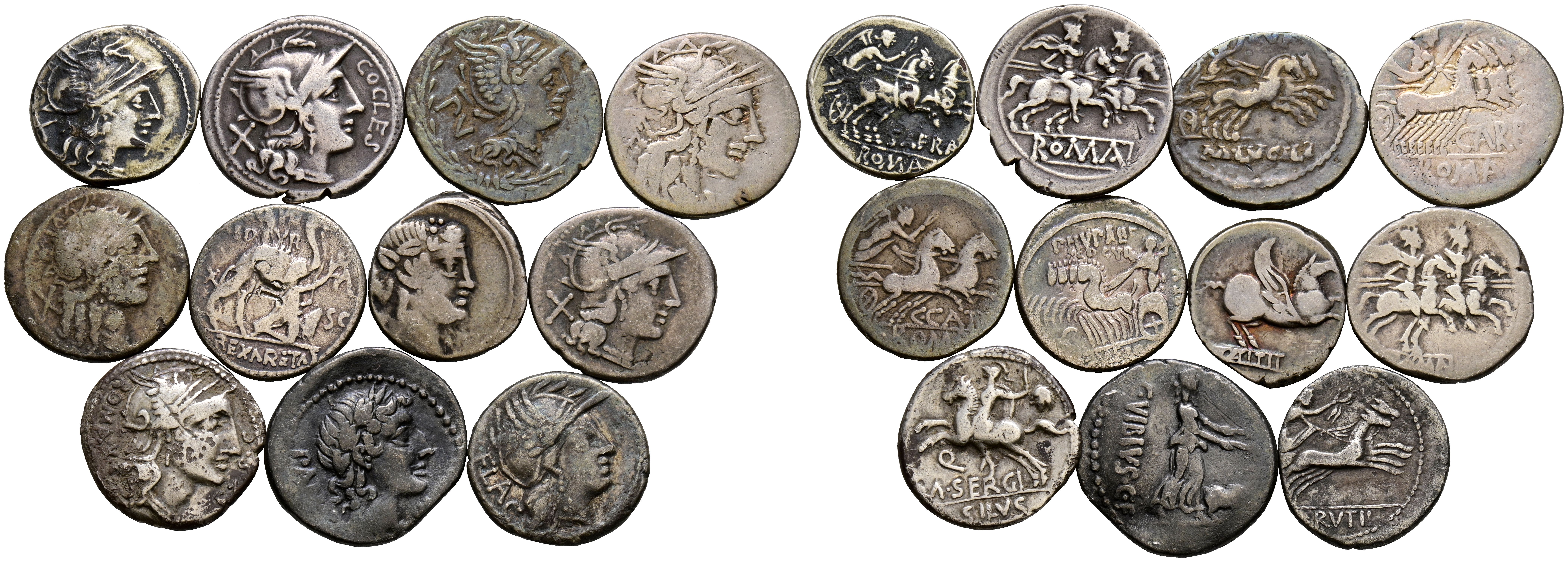 Conjunto de 11 denarios republicanos de distintas familias y calidades. IMPRESCINDIBLE EXAMINAR.