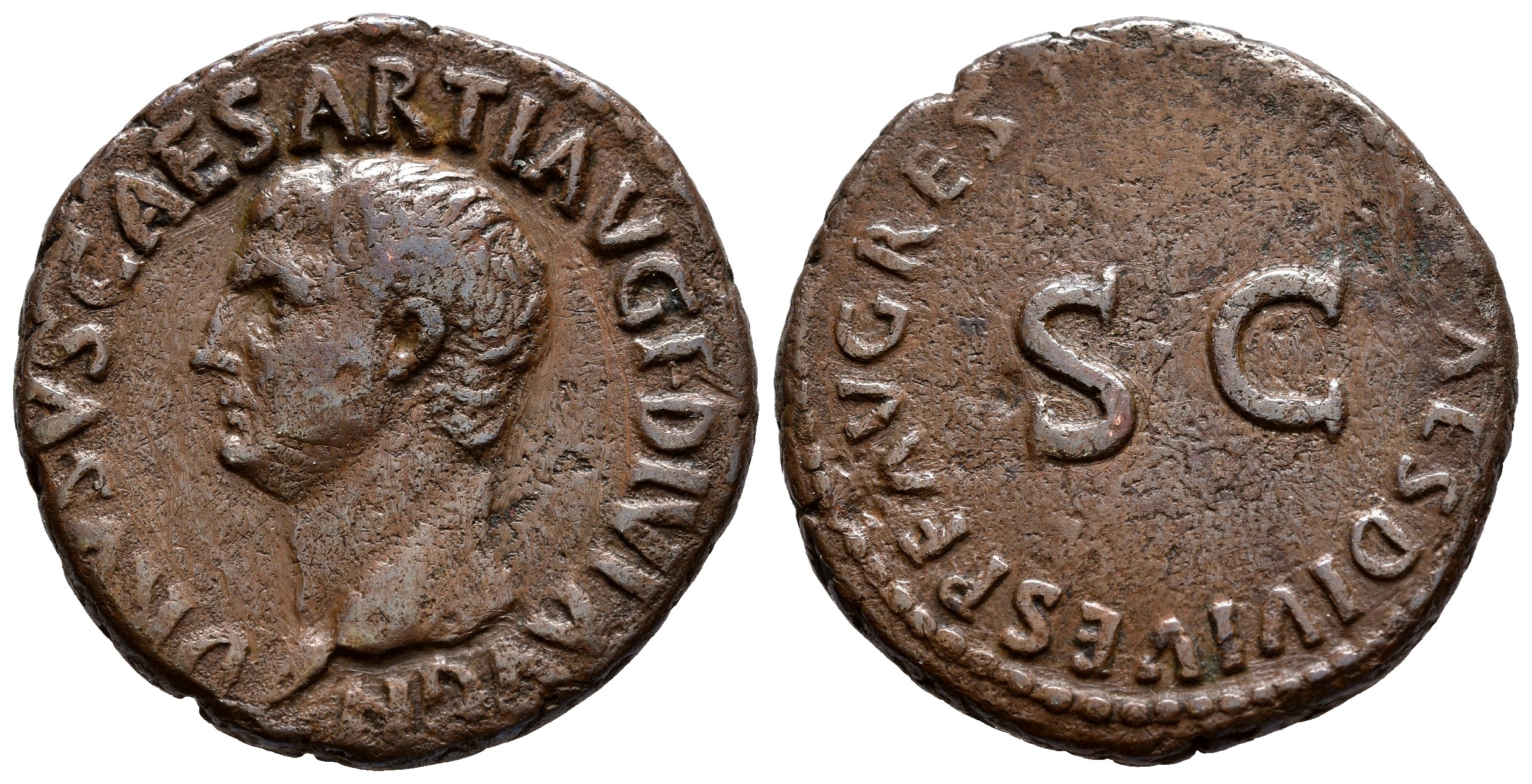 DRUSO, Emisión de restitución de uno de los hijos de Vespasiano. As. (Ae. 10,37g/22mm). 20-21 d.C. Roma. (RIC 45). Anv: Cabeza de Druso a izquierda, alrededor leyenda: DRVSVS CAESAR TI AVG F DIVI AVG N. Rev: SC, alrededor leyenda: PONTIF TRIBVN POTES ITER. MBC+. Bonito ejemplar, escaso así.