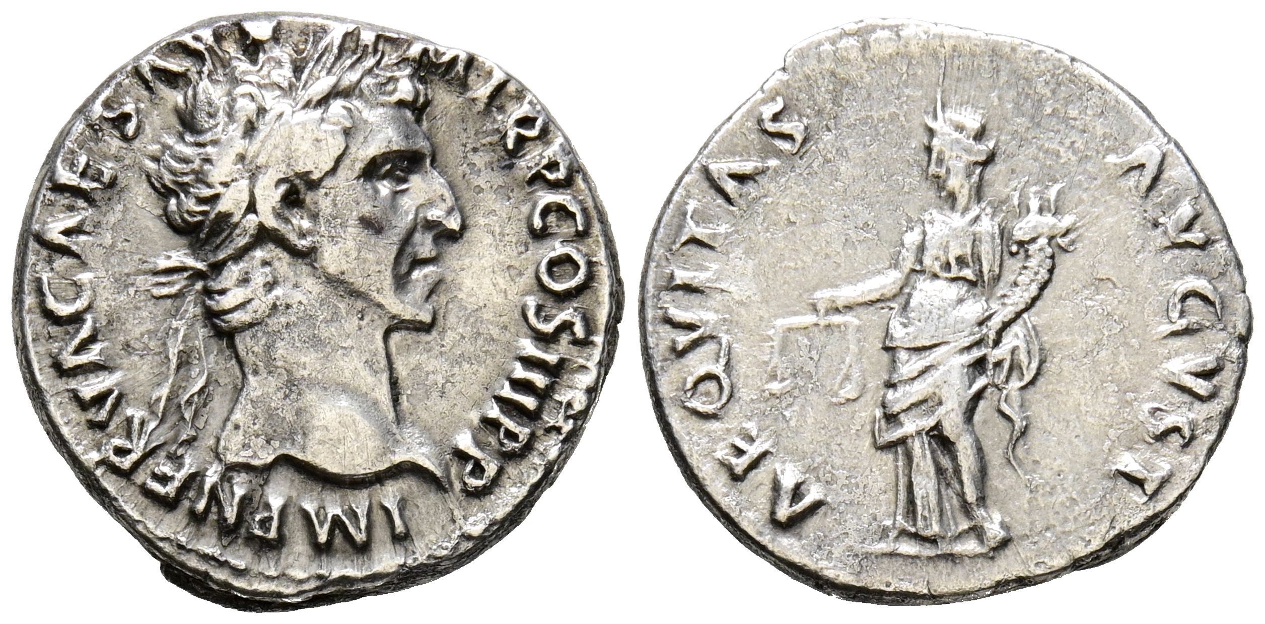NERVA. Denario. (Ar. 3,02g/17mm). 97 d.C. Roma. (RIC 25). Anv: Cabeza laureada de Nerva a derecha, alrededor leyenda: IMP NERVA CAES AVG P M TR P II COS III P P. Rev: Aequitas estante a izquierda portando escalas y cornucopia, alrededor leyenda: AEQVITAS AVGVST. MBC.