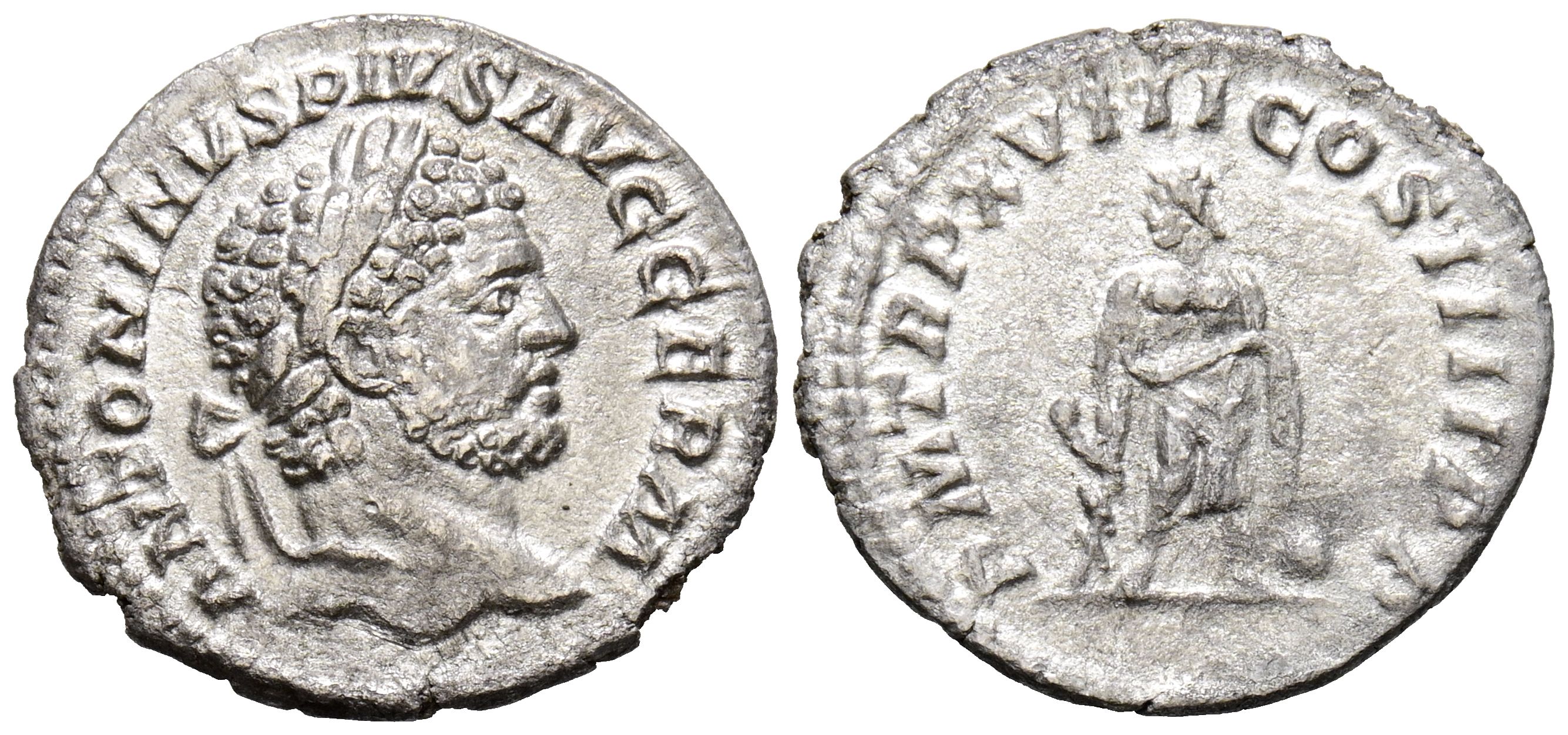 CARACALLA. Denario. (Ar. 1,74g/19mm). 215 d.C. Roma. (RIC 251). Anv: Busto laureado de Caracalla a derecha, alrededor leyenda: ANTONINVS PIVS AVG GERM. Rev: Aesculapius estante a izquierda con una vara en la que se enrolla una serpiente, detrás globo, alrededor leyenda: P M TR P XVIII COS IIII P P. MBC.