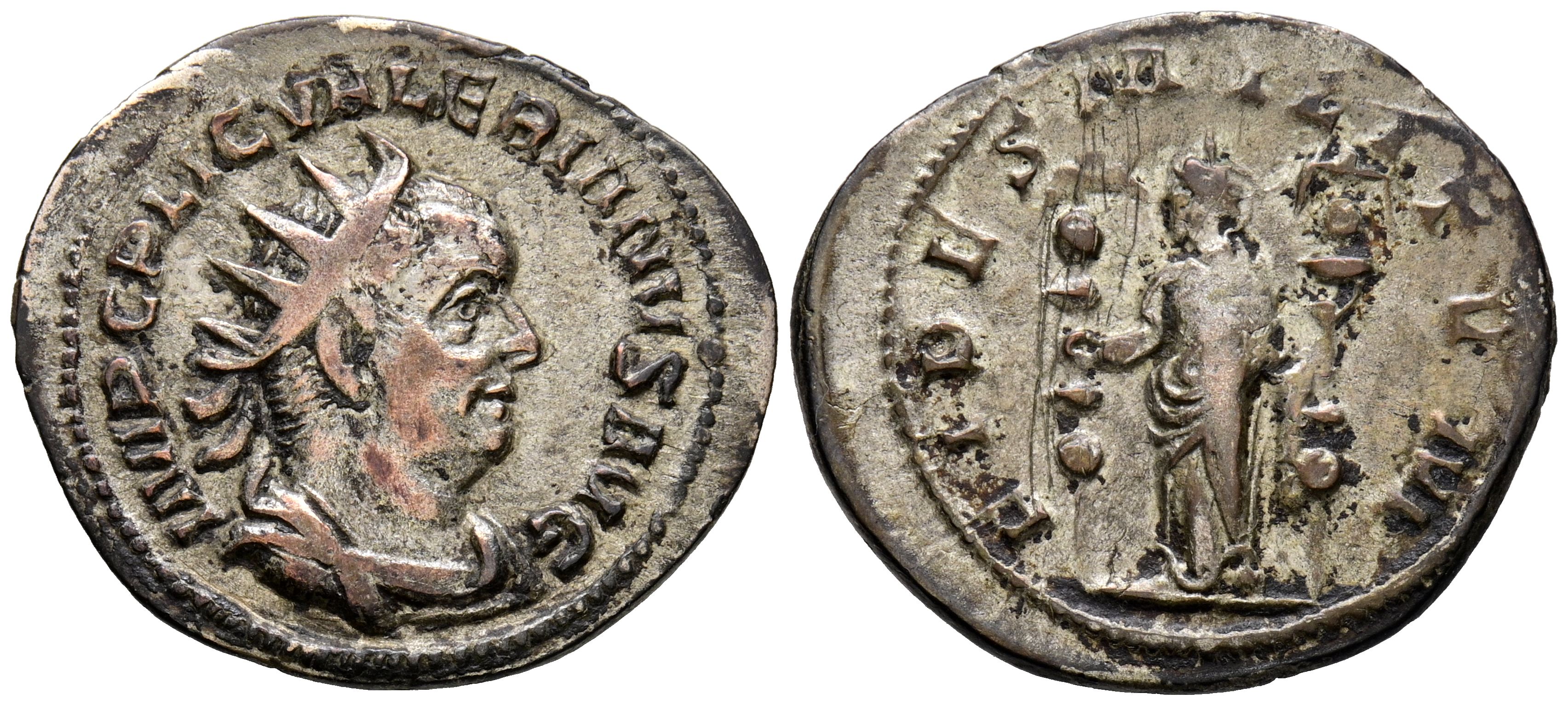 VALERIANO I. Antoniniano. (Ar. 3,53g/24mm). 253-254 d.C. Roma. (RIC 89). Anv: Busto drapeado de Valeriano I a derecha, alrededor leyenda: IMP C P LIC VALERIANVS P F AVG. Rev: Fides estante a izquierda portando estandartes, alrededor leyenda: FIDES MILITVM. MBC.