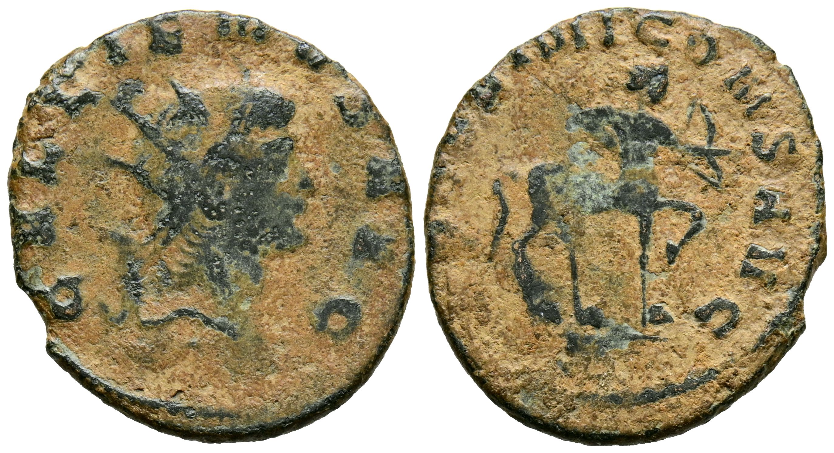 GALIENO. Antoniniano. (Ae. 2,65g/21mm). 267-268 d.C. Roma. (RIC 163). Anv: Cabeza radiada de Galieno a derecha, alrededor leyenda: GALLIENVS AVG. Rev: Centauro con arco a derecha, alrededor leyenda: APOLLINI CONS AVG. MBC.
