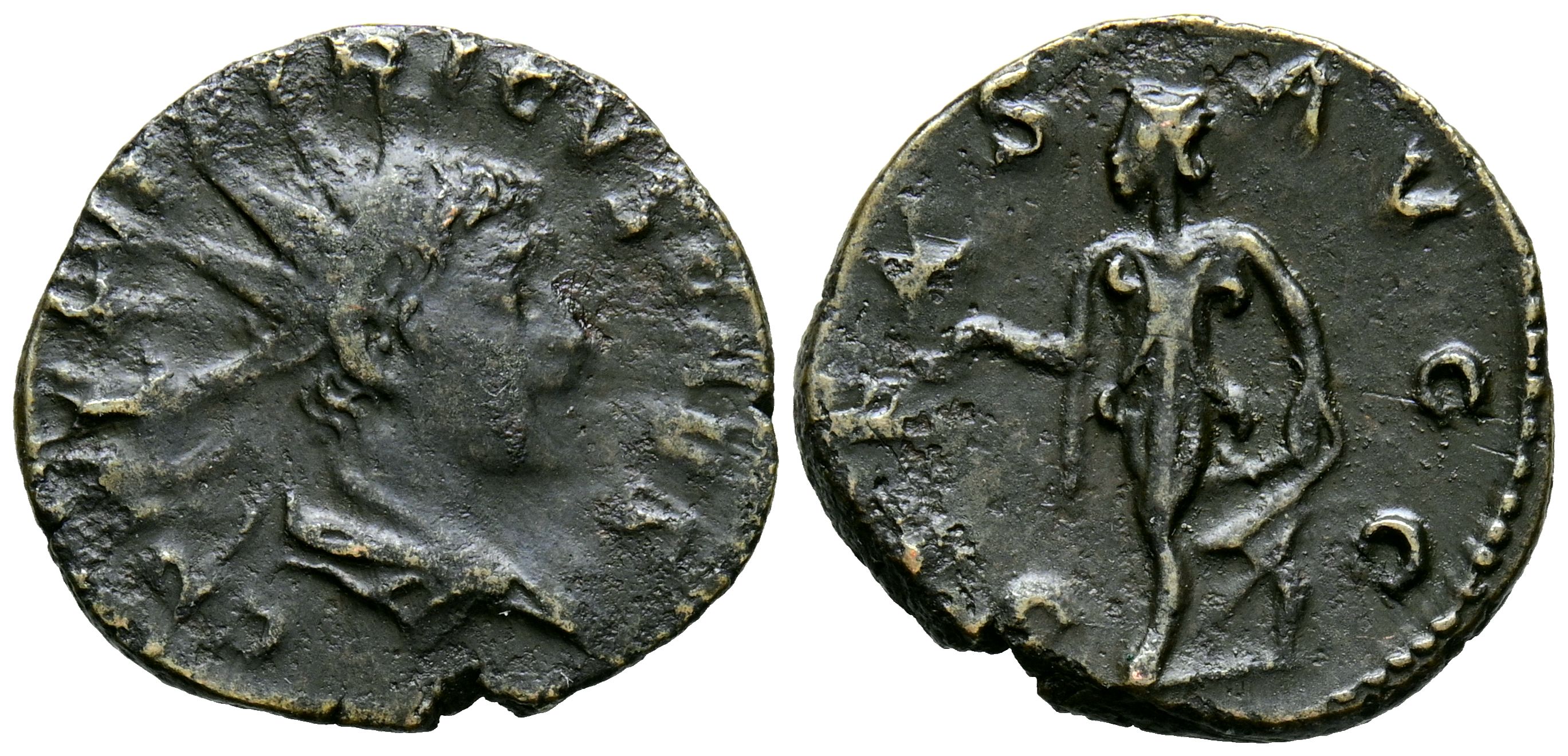 TETRICO II. Antoniniano. (Ae. 2,37g/19mm). 272-273 d.C. Treveri. (RIC 272). Anv: Busto radiado y drapeado de Tétrico II a derecha, alrededor leyenda: C PIV ESV TETRICVS CAES. Rev: Spes avanzando a izquierda portando flor, alrededor leyenda: SPES PVBLICA. MBC-/MBC.