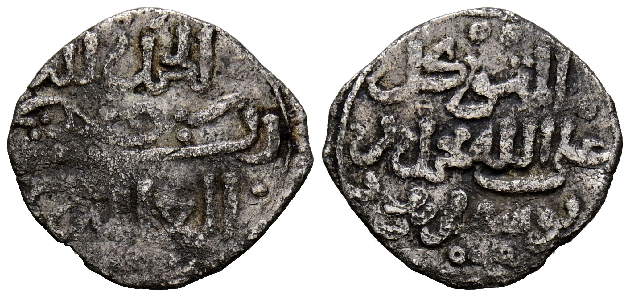 TAIFAS ALMOHADES. BANU HUD (Reyes de Murcia), Muhammad al-Mutawakkil (625-635H/1228-1238). 1/2 Dirham. (Ar. 0,55g/13mm). Sin marca de ceca. (Vives 2135; Hohertz 2017 678). MBC-/BC+. Muy escaso.