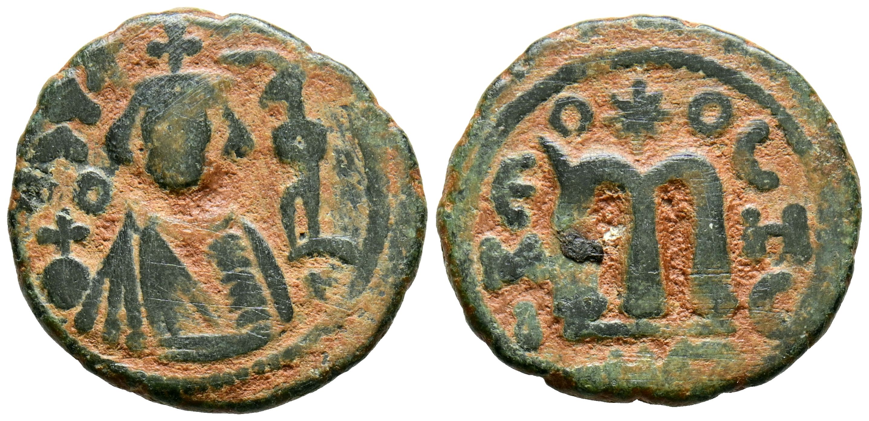 CALIFATO OMEYA DE DAMASCO. Felus, tipo árabe-bizantino. (Ae. 4,00g/20mm). 14-50H (ca.) Emesa. (Album 3524). MBC.